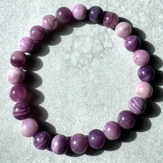 この魅力的なチシャ猫模様のマッシブバンデッドフローライトブレスレットは、手元に特別な存在感を与え、あなたの個性を際立たせます。自然が生み出したユニークな模様は、あなたのスタイルを一層引き立てる要素となり、日常をより華やかに彩ります! 8ミリ 内径16センチ フローライトのヒーリング効果 ○受験のお守り ○ネガティブな感情を解消する ○頭の疲れをとる ○集中力と思考力を高める ○自由を求める心を強める ○記憶力を高める ○抑圧された感情の解放 ○無邪気な発想と思考 和名は「石花蛍石」と呼び、蛍石(フローライト)の中に石英が染み込み、樹木のような姿に見えることから、石花蛍石(いしはなほたるいし)と呼ばれています。 石で出来た花は、永遠に枯れることがないことから、気になる異性にプレゼントすると、良好な関係が永遠に続くと言われています。 また、柔らかい羽が入ったような模様から、「エンジェルフェザーinフローライト」、または「フラワーinフローライト」とも呼ばれ、大変に珍しい希少なフローライトの一種です。 フローライトは、大人になるにつれ固定化されてきた思考や抑圧された感情から自分を解き放つ為に働き、子供ような自由で無邪気な発想や思考力を高めるといわれます。 脳や海馬を活性化させ、明晰性や記憶力を高めるとも言われ、「天才の石」などともいわれます。 特にその中でもまだあまり知られていない「エンジェルフェザーinフローライト」は、心の癒し、平和、平安などの意味を持つとされ、第3、第4チャクラに対応する石と言われます。 インスピレーションを天界と繋ぐパワー持つ石とも言われ、天使が持ち主とその大切な人々を導き、護ると言われています。 恐れず立ち向かう勇気とパワーを授けると言われ、身につけるのはもちろん、枕元などに置いて眠ると安眠をもたらし、心を鎮めて深くリラックスした状態に導くとも言われています。