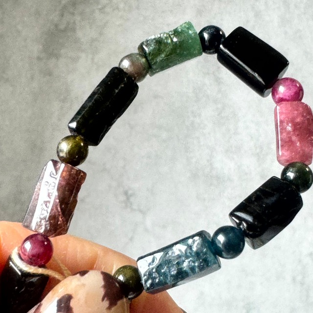 キャンディのようなミックストルマリンチューブカットブレスレットB
