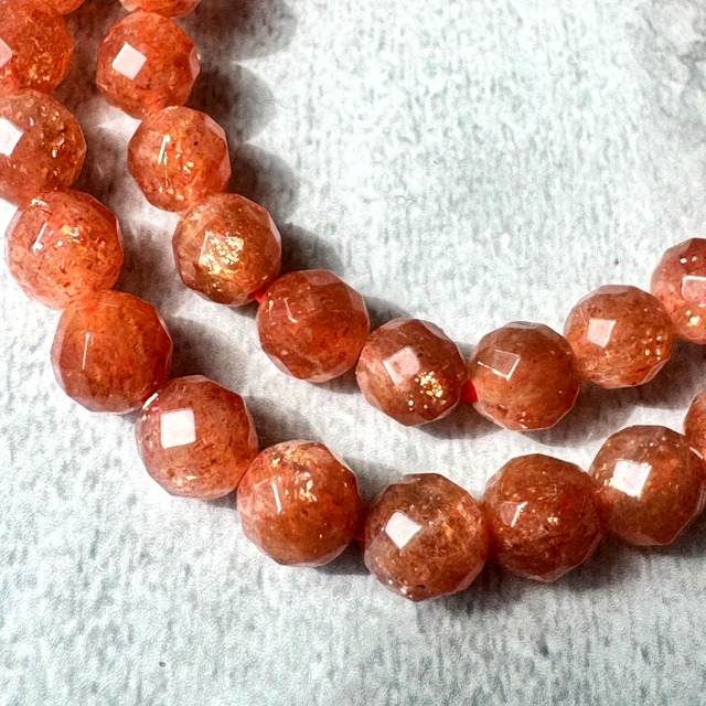 サンストーンラウンドカットブレスレットは、太陽の光を思わせる輝きが特徴です。このブレスレットは、自然光に当たると美しいオレンジの輝きを放ち、周囲を明るく彩ります。その輝きは、あなたの日常にエネルギーとポジティブさをもたらしてくれることでしょう。 7ミリ 内径16センチ ランダム発送 サイズダウンは購入時に備考欄で記入してください サンストーンのヒーリング効果 ○自尊心をもたらす ○劣等感を取り除く ○男性のシンボル的エネルギー ○自信を育てる ○健全な意思の主張を助ける ○安心感を与える ○心の余裕を生む ○感情の起伏を抑える サンストーンの持つエネルギーは確かに名前の通り、「太陽の様な」エネルギーなのですが、それは見た目のようなキラキラした強いものではなく、とても優しいエネルギーと言えます。 サンストーンは、自信の無い人やコンプレックスの強い人に対して、冷えた心を太陽の光が温めてくれるように、自信を取り戻す為に働きます。 サンストーンは人生に対する安心感、自分が存在することが素晴らしいことだという自己肯定感を与えてくれる石です。苛立ちや感情の起伏を抑えてコンプレックスや心の傷が癒されると、心に余裕がうまれます。 サンストーンは心に余裕をつくり、さらに人生に対する創造性を高め、前向きに人生を楽しむ事を教えてくれます。 精神的に自分を追い詰めやすいタイプの方にとっては、ストレスが緩和される為、健康面たとえば胃腸などへ良い影響が期待できるかもしれません。 サンストーンと言う名前は鉱物的な性質から名づけられ たものではなく、ムーンストーンの静かな光と対照的 に思えるキラキラした光を持つことから名づけられ た、宝石としての名称です。 十七世紀ごろから呼ばれていたムーンストーンと違って、サンストーンという名は比較的新しいものです。 ヘリオライト(Heliolite)という別名もあります。ギリシア語でヘリオは太陽、つまり太陽の石を意味します。