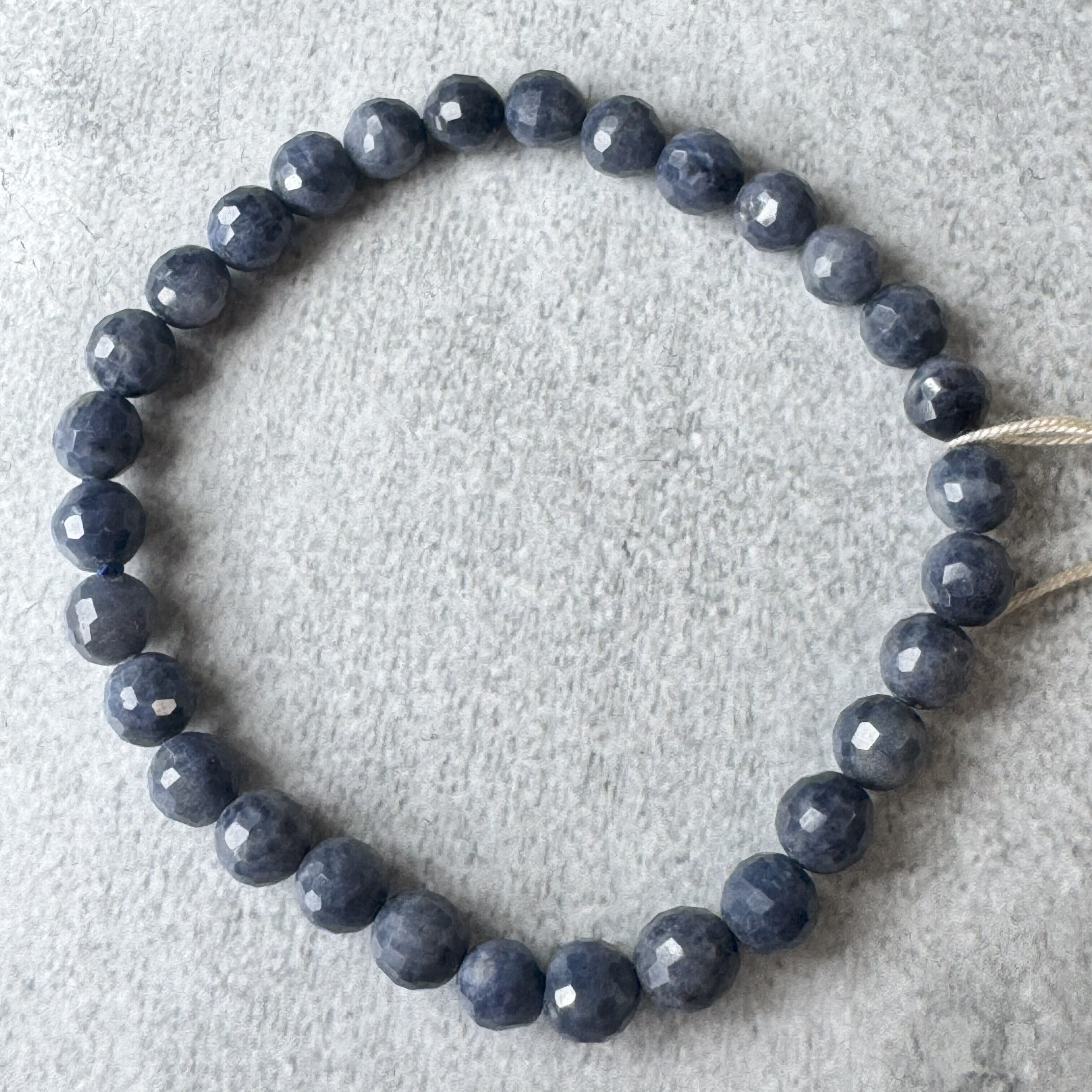 落ち着いたカラーでミラーボールカットがキラキラしている小粒のサファイアブレスレットです。