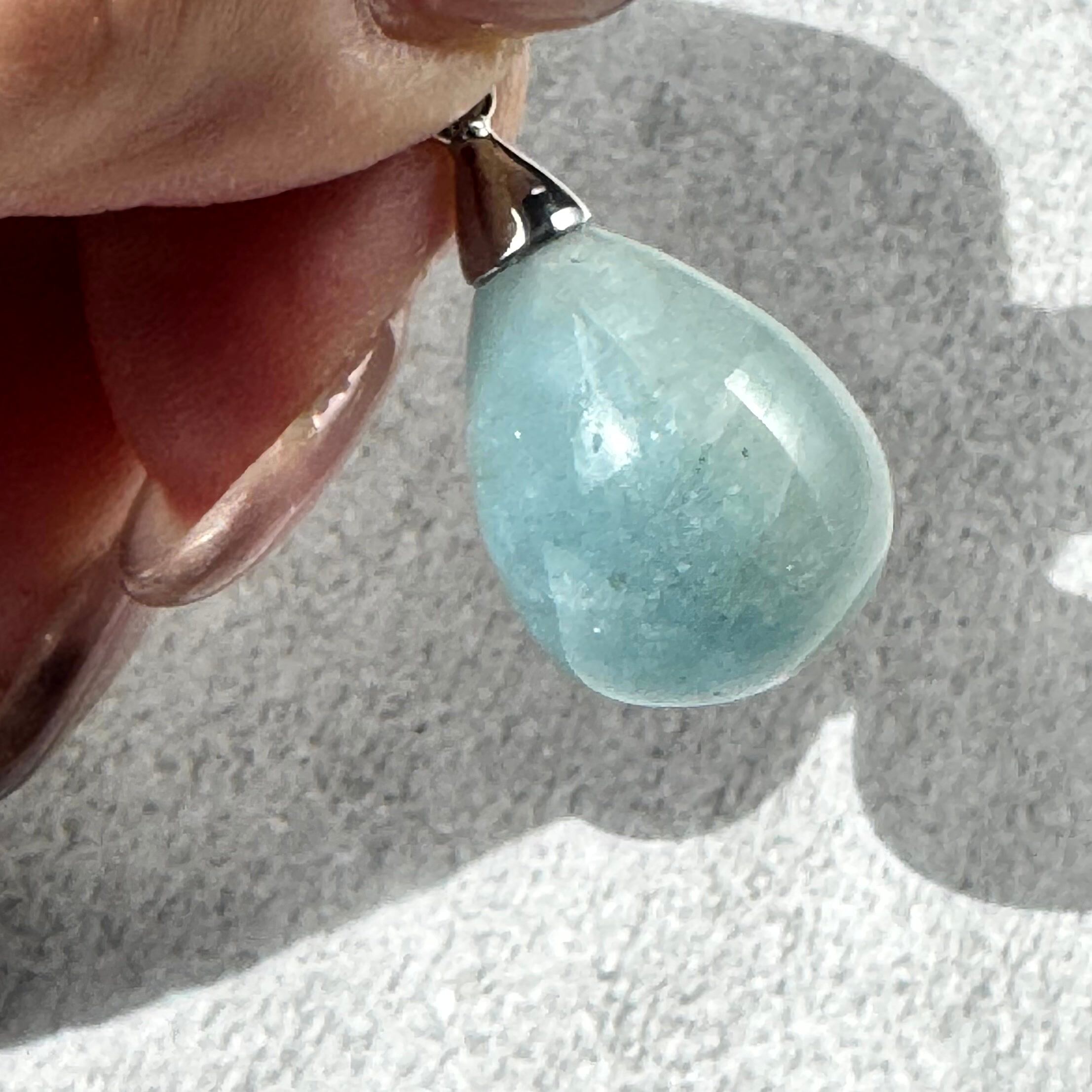 美しいミルキーアクアマリンを使用したペンダントトップです。やさしい乳白色が特徴で、季節問わず身に着けられます。