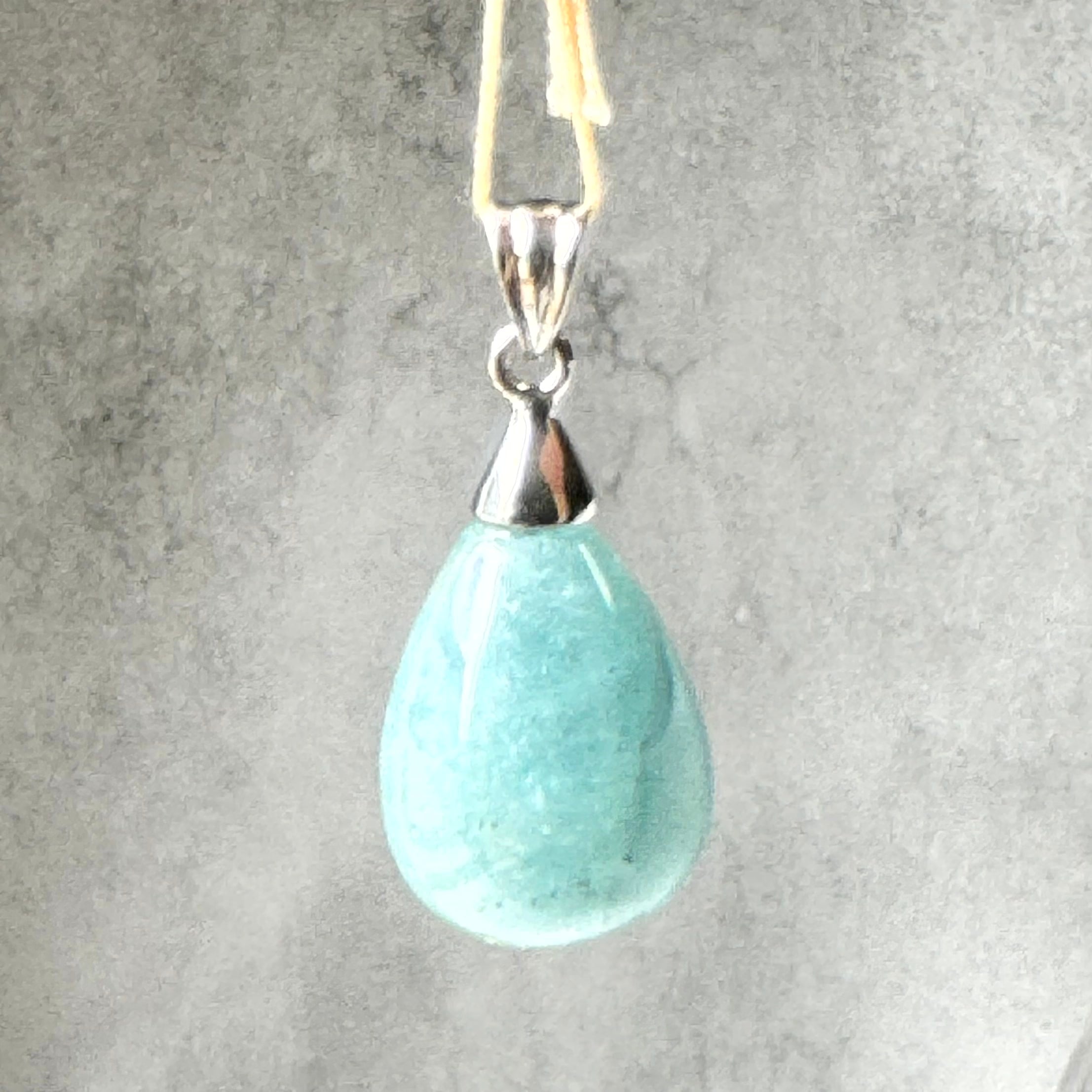 美しいミルキーアクアマリンを使用したペンダントトップです。やさしい乳白色が特徴で、季節問わず身に着けられます。