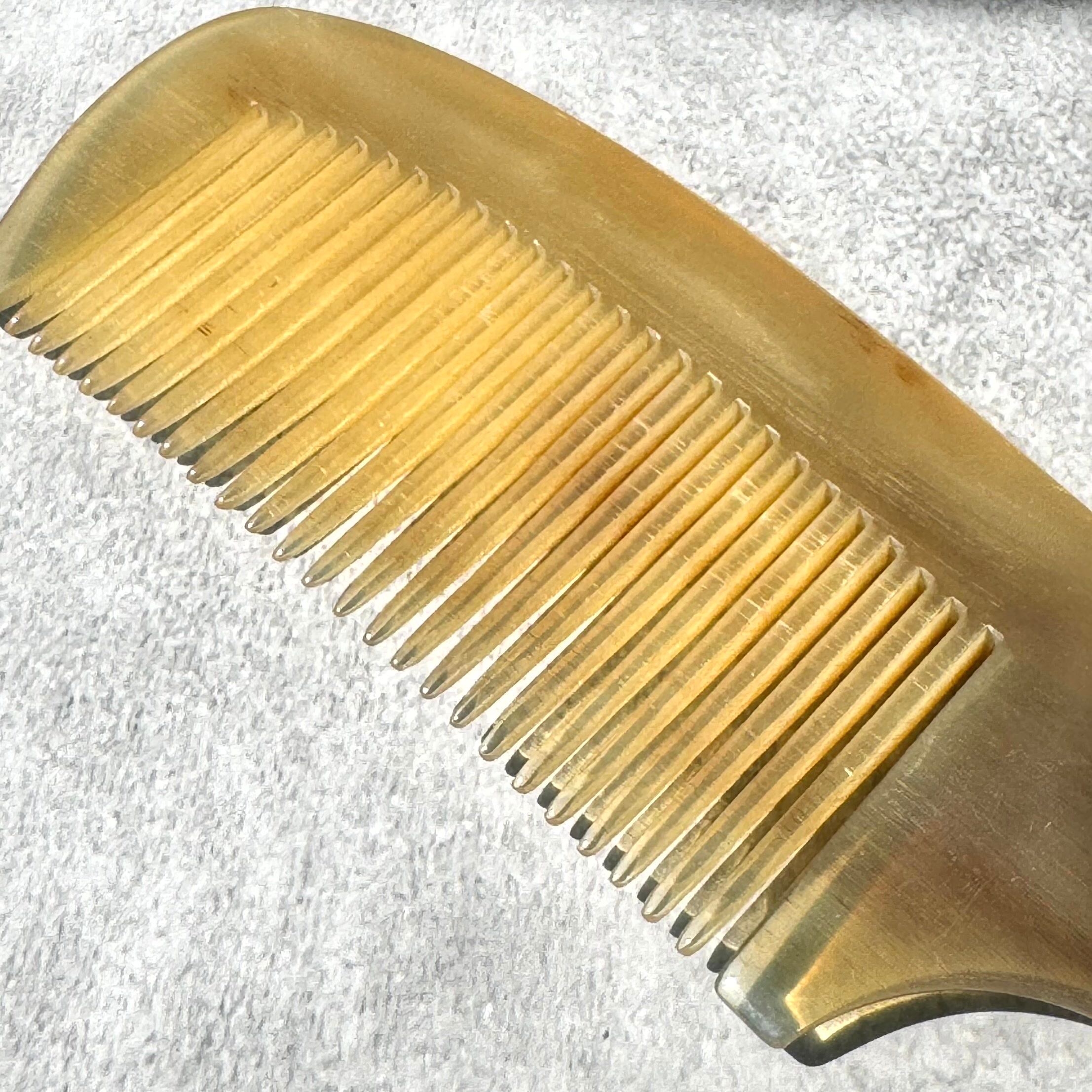 ※ 日本では、静電気が起きにくい櫛として「柘植(つげ)の櫛」が有名ですが、水牛角の櫛は柘植櫛より更に静電気が起きにくいです。