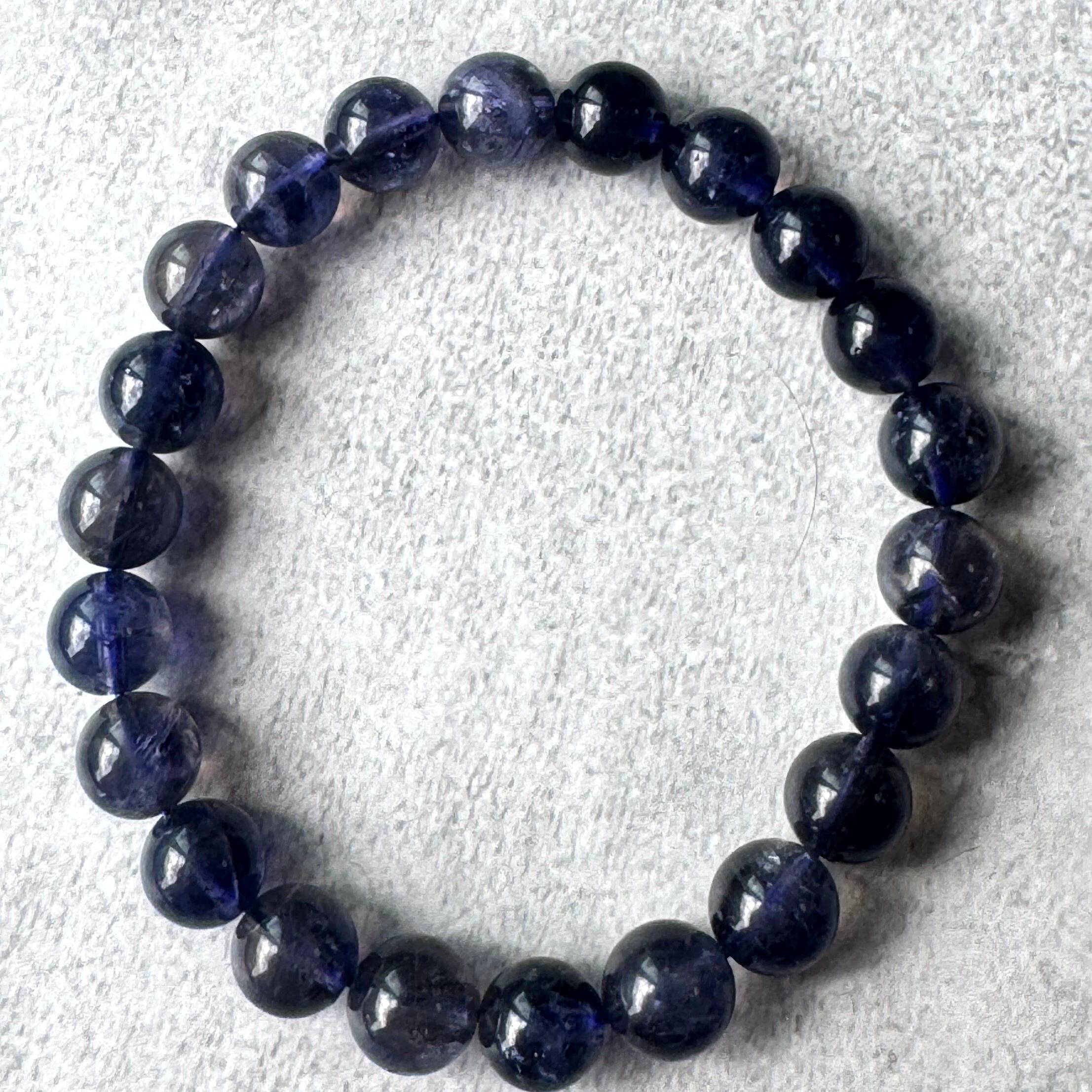 透明感抜群で、グレー・イエロー・アイオライトらしい菫色の多色を感じることができる高品質なブレスレットです。