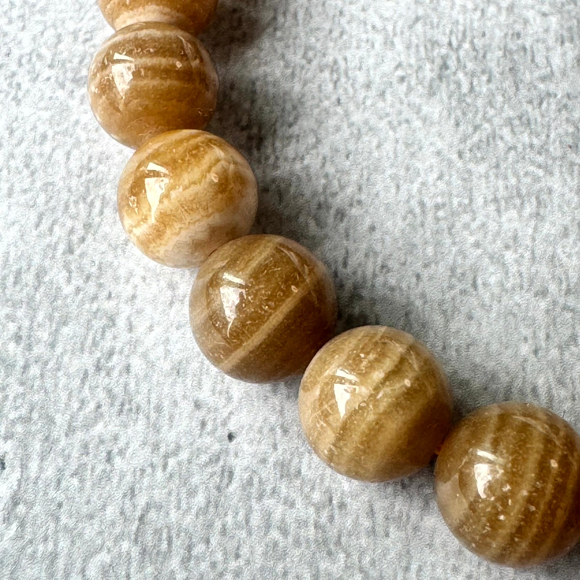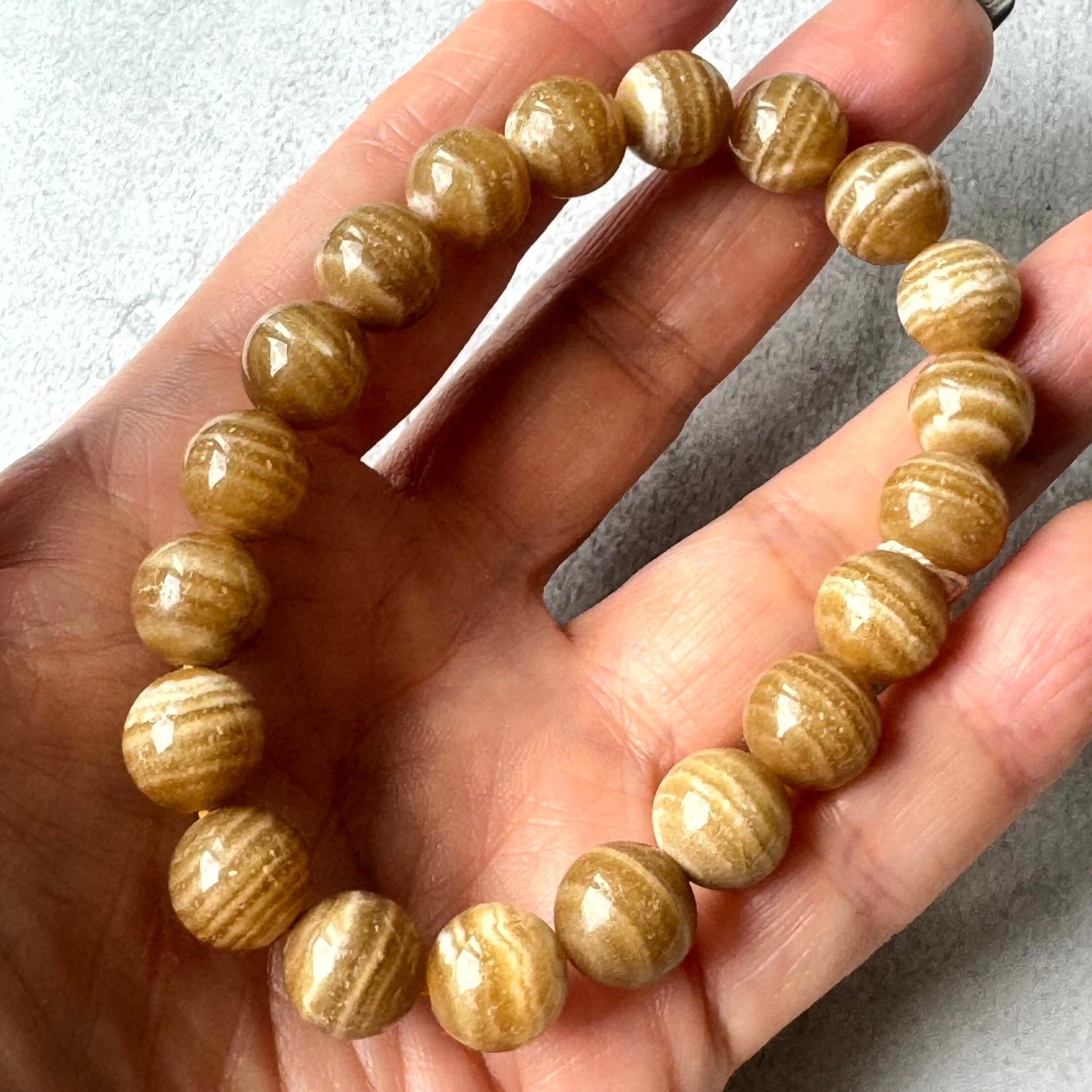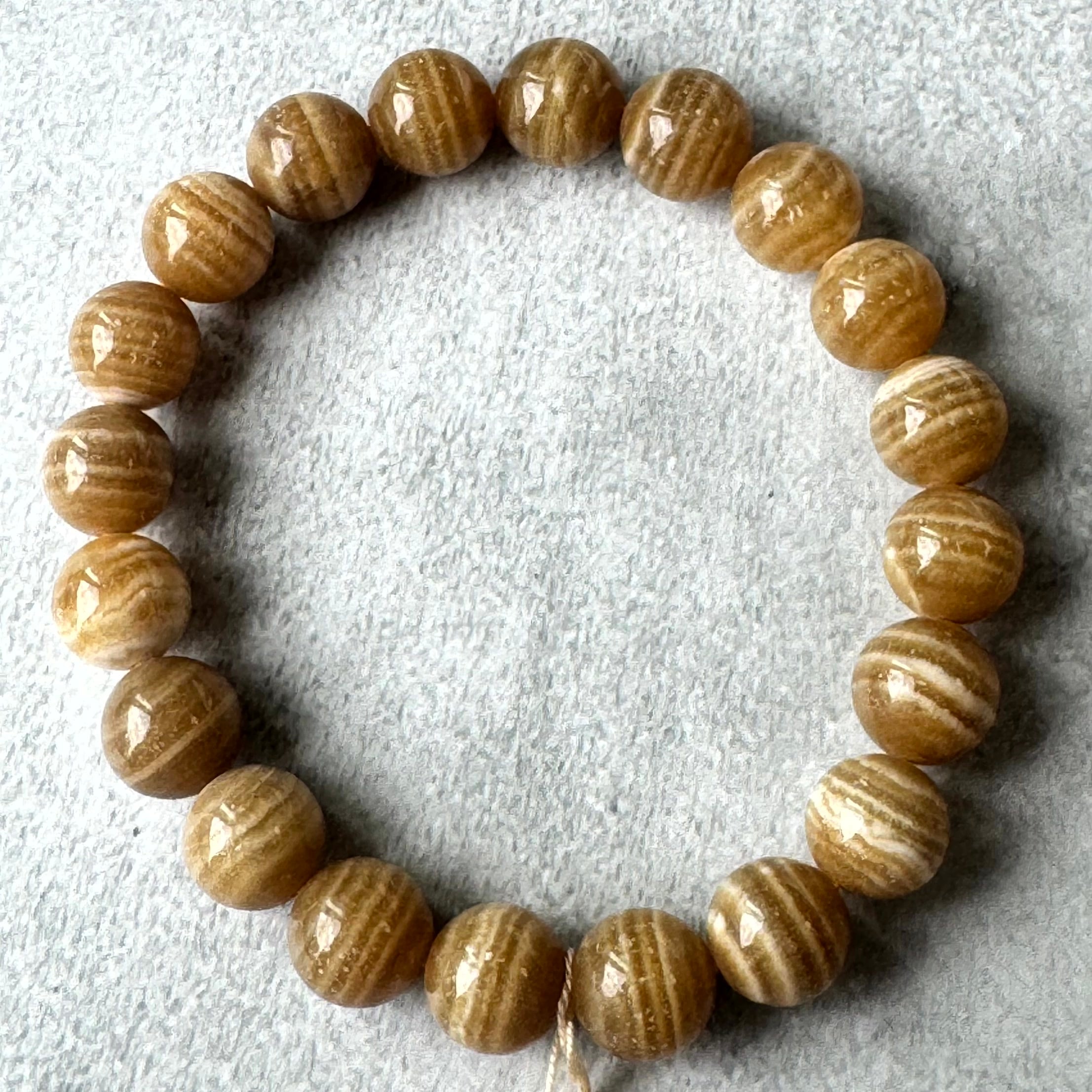 渋い縞々が魅力的なブラウンアラゴナイトブレスレットです。