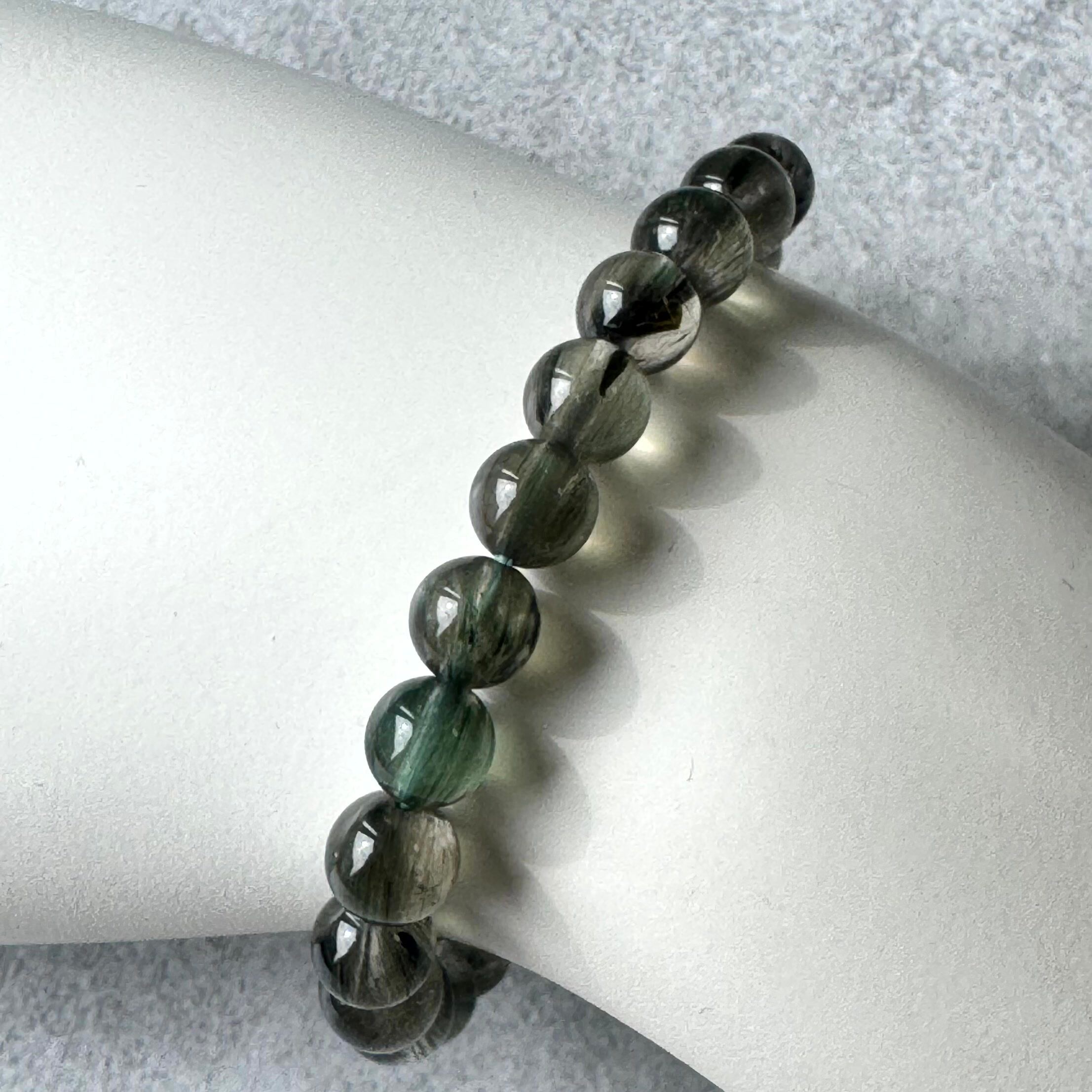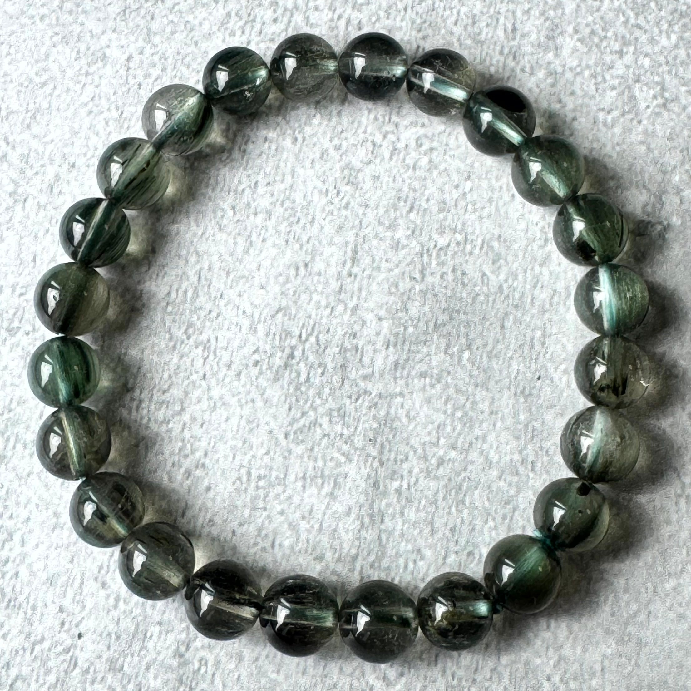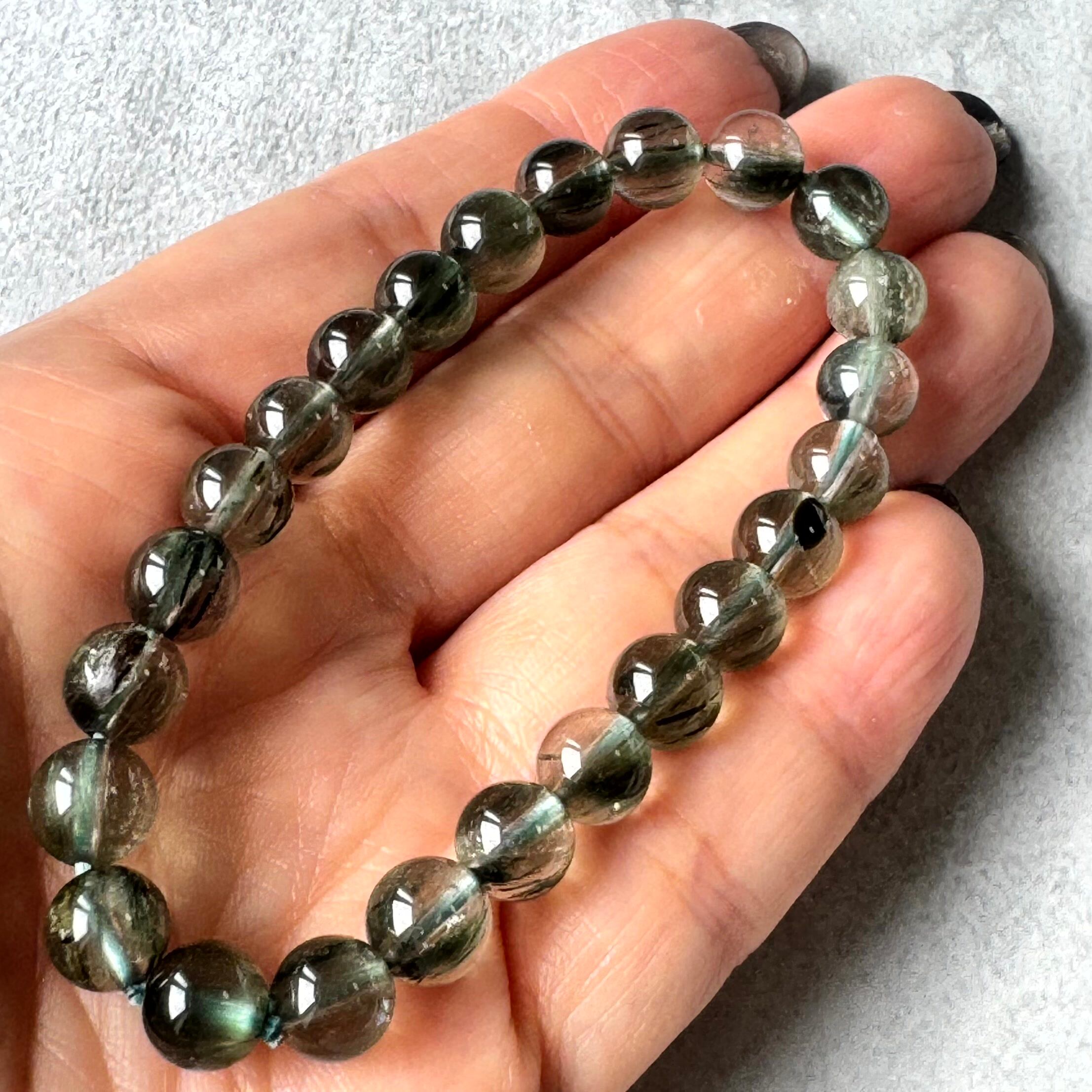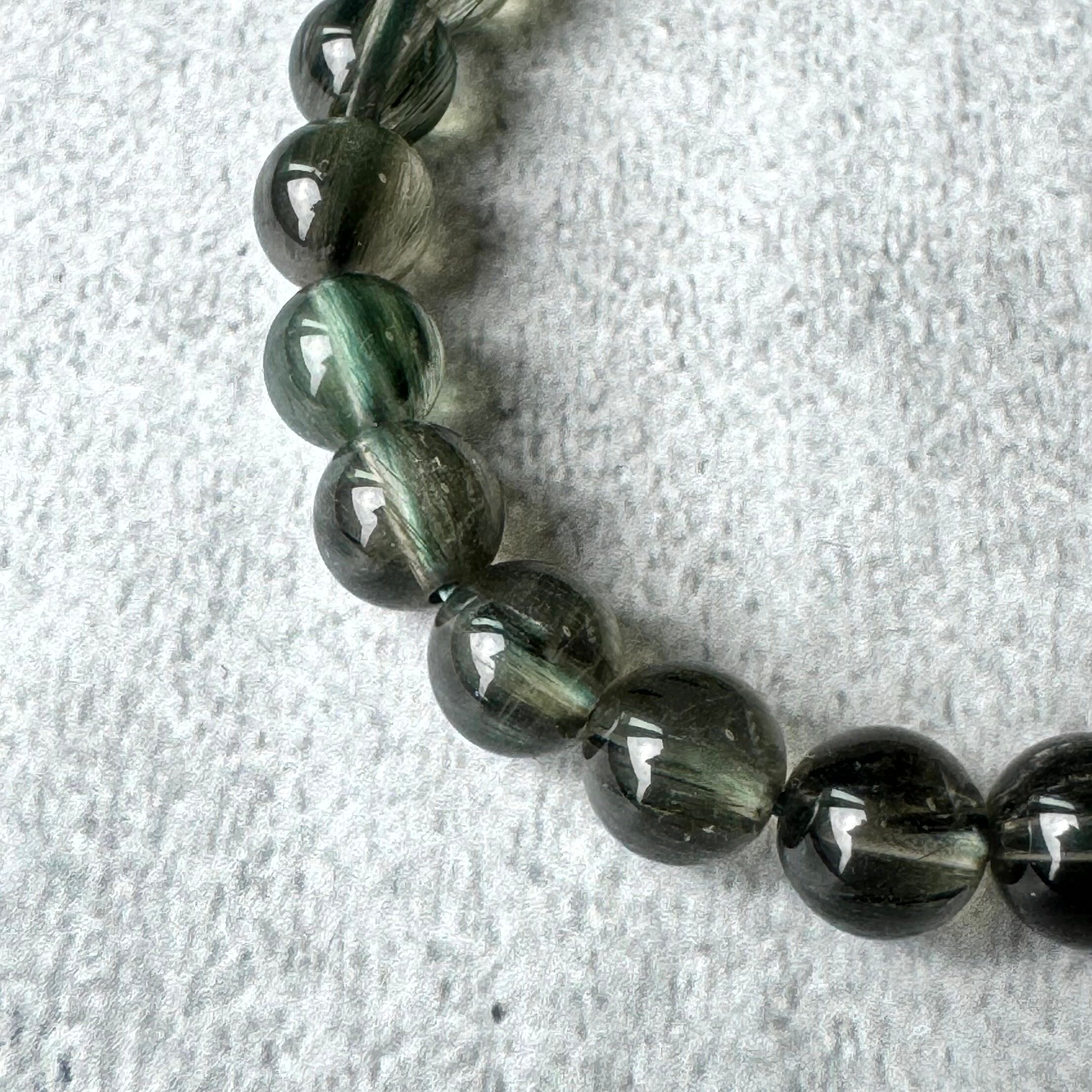 グリーンルチル(トルマリンインクォーツ・アクチノライトインクォーツ)のブレスレットです。