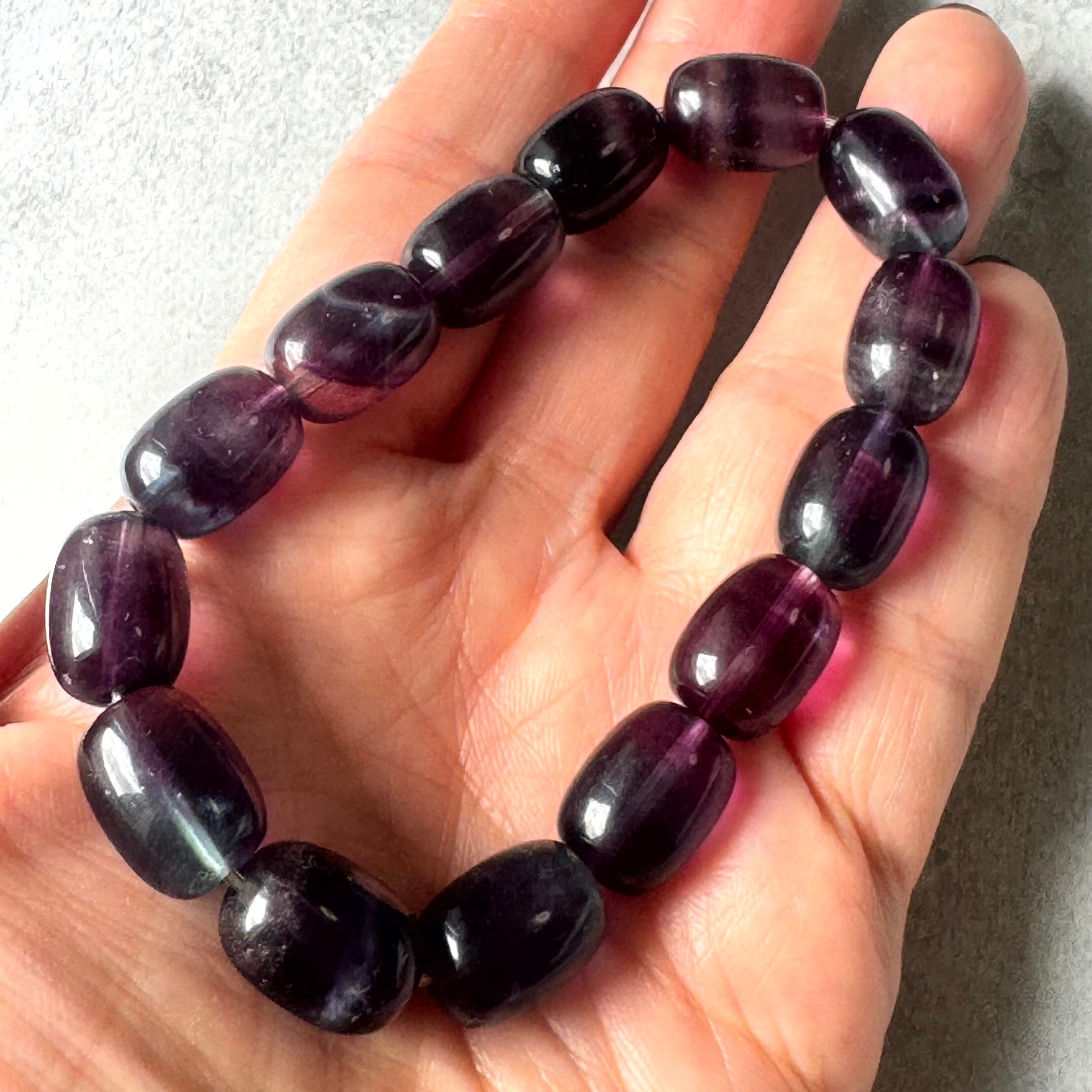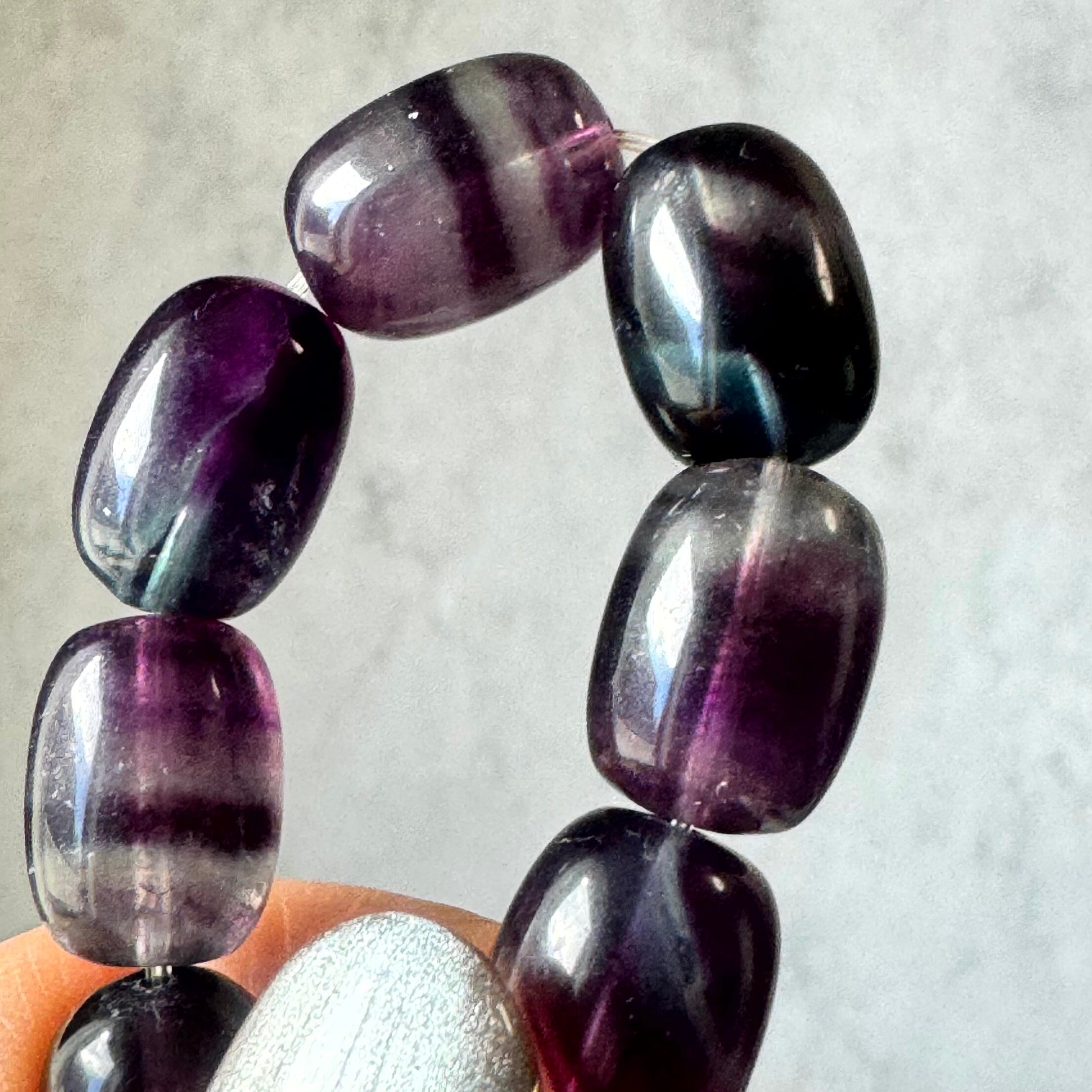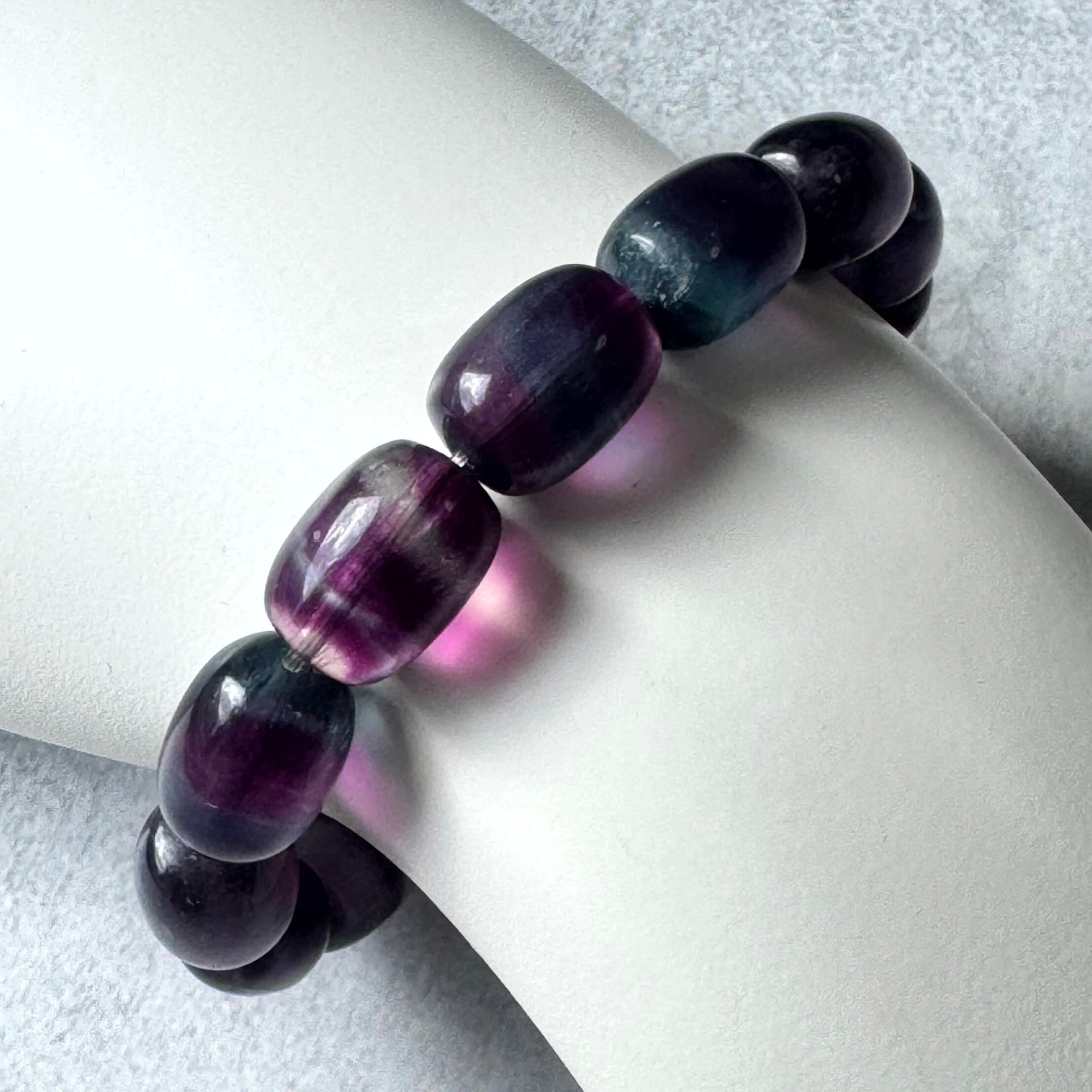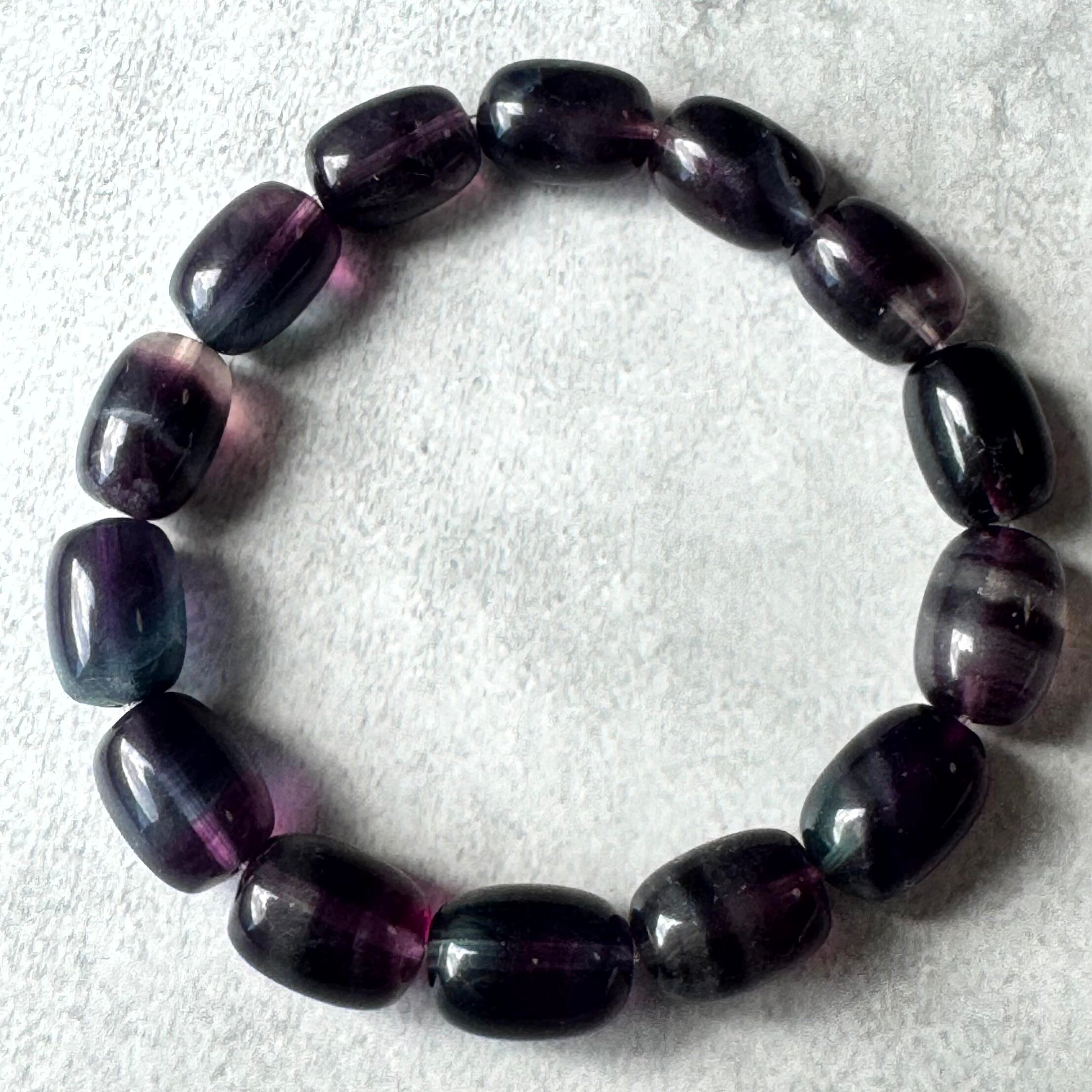 青や紫が美しいフローライトチューブカットブレスレット