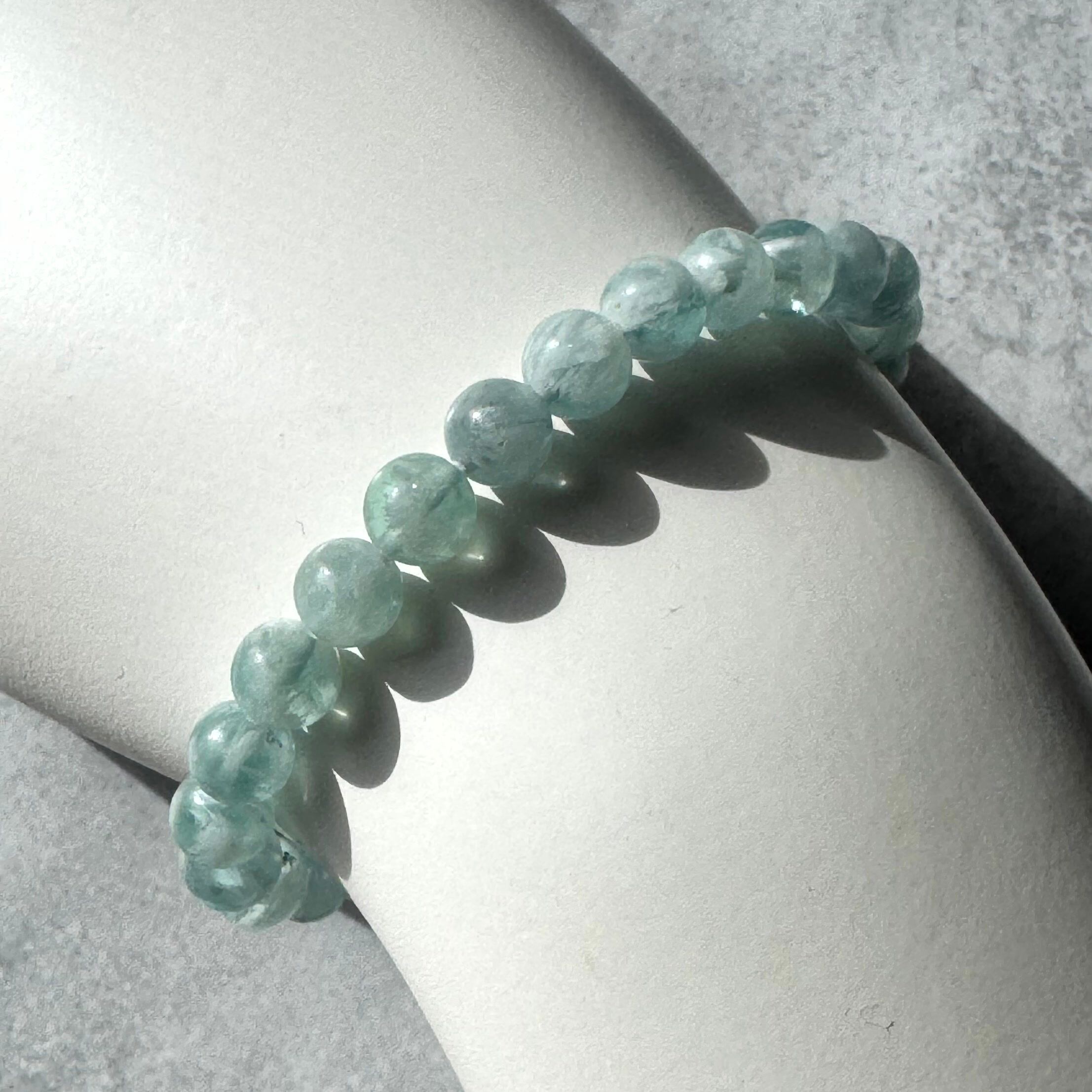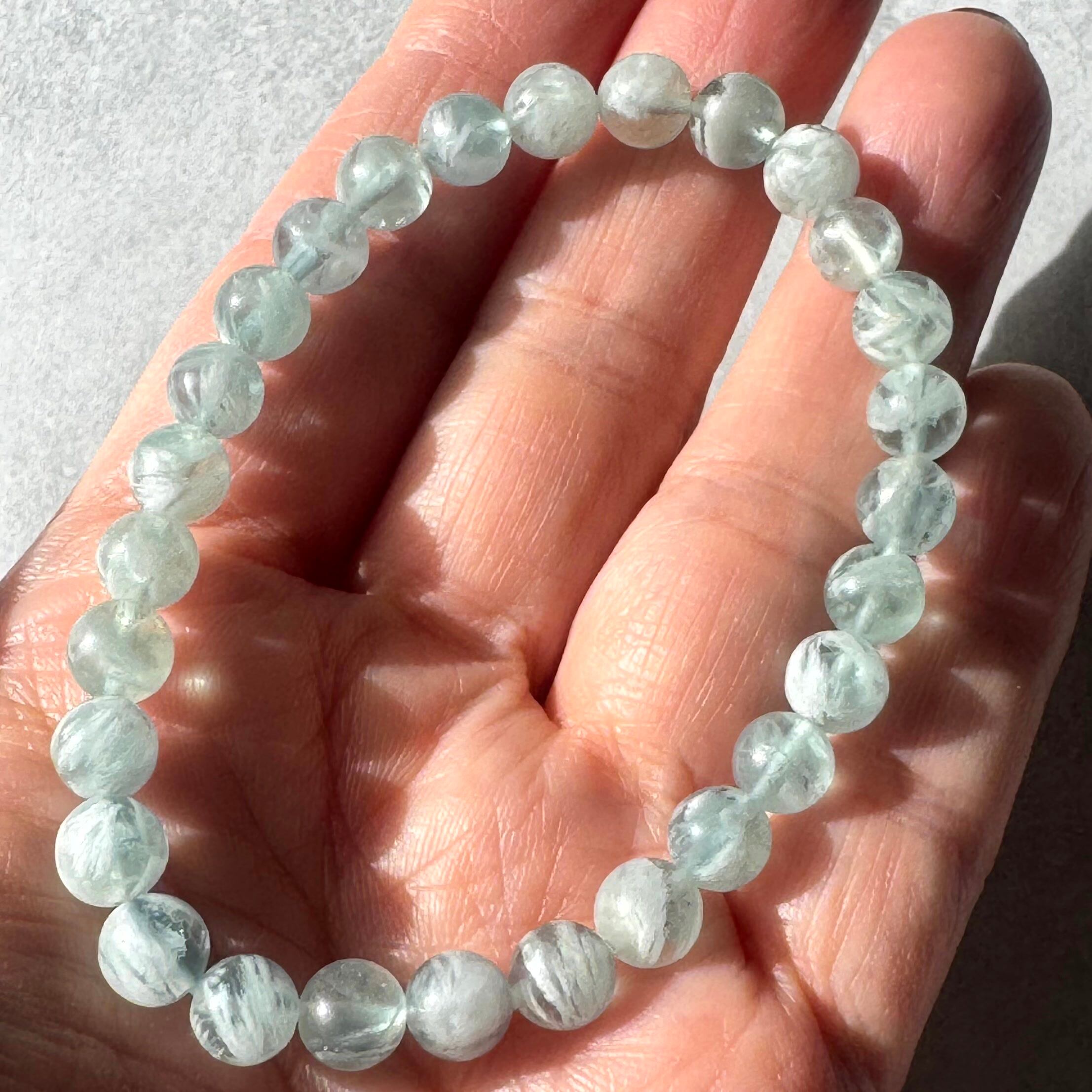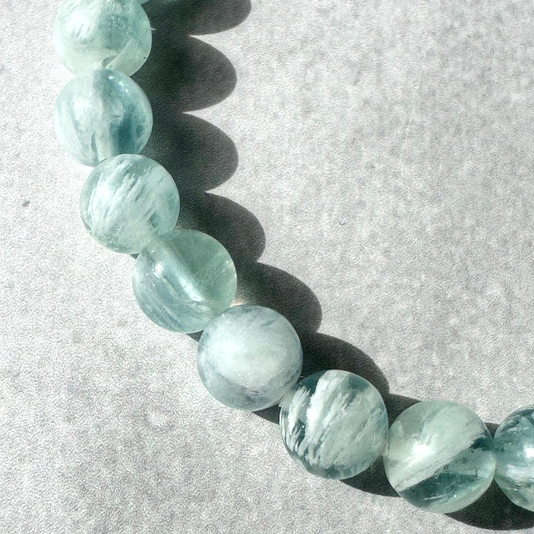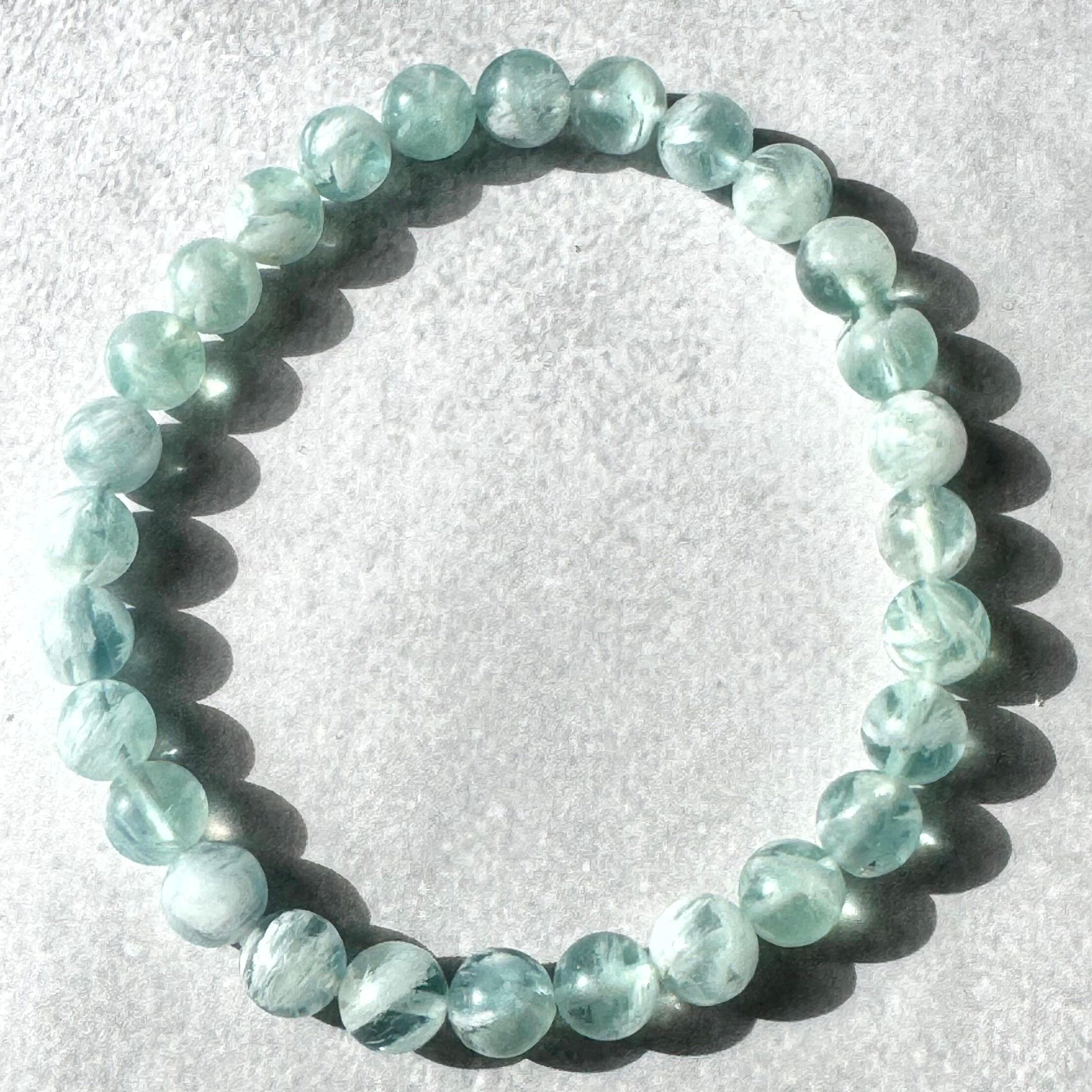 憂いのあるブルーグリーンのエンジェルフェザーフローライトブレスレット