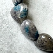 トロール石は天藍石ラズライトの仲間で、マグネシウムと鉄とアルミニウムのリン酸塩系の鉱物です。ラピスラズリの青金石ラズライトではありませんのでご注意を!マグネシウムと鉄の比率で少ない順からトロレアイト(トロール石)、アズライト、スコルザライト(スコルツァライト)となります。そのためそれぞれが共生している場合が多く、青緑~紺藍色~灰色がかった色と変化していきます。