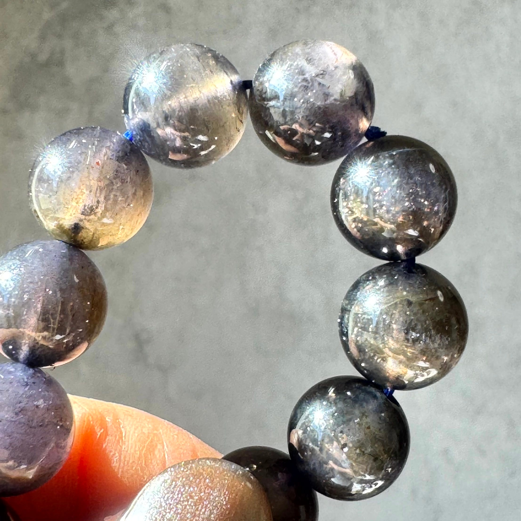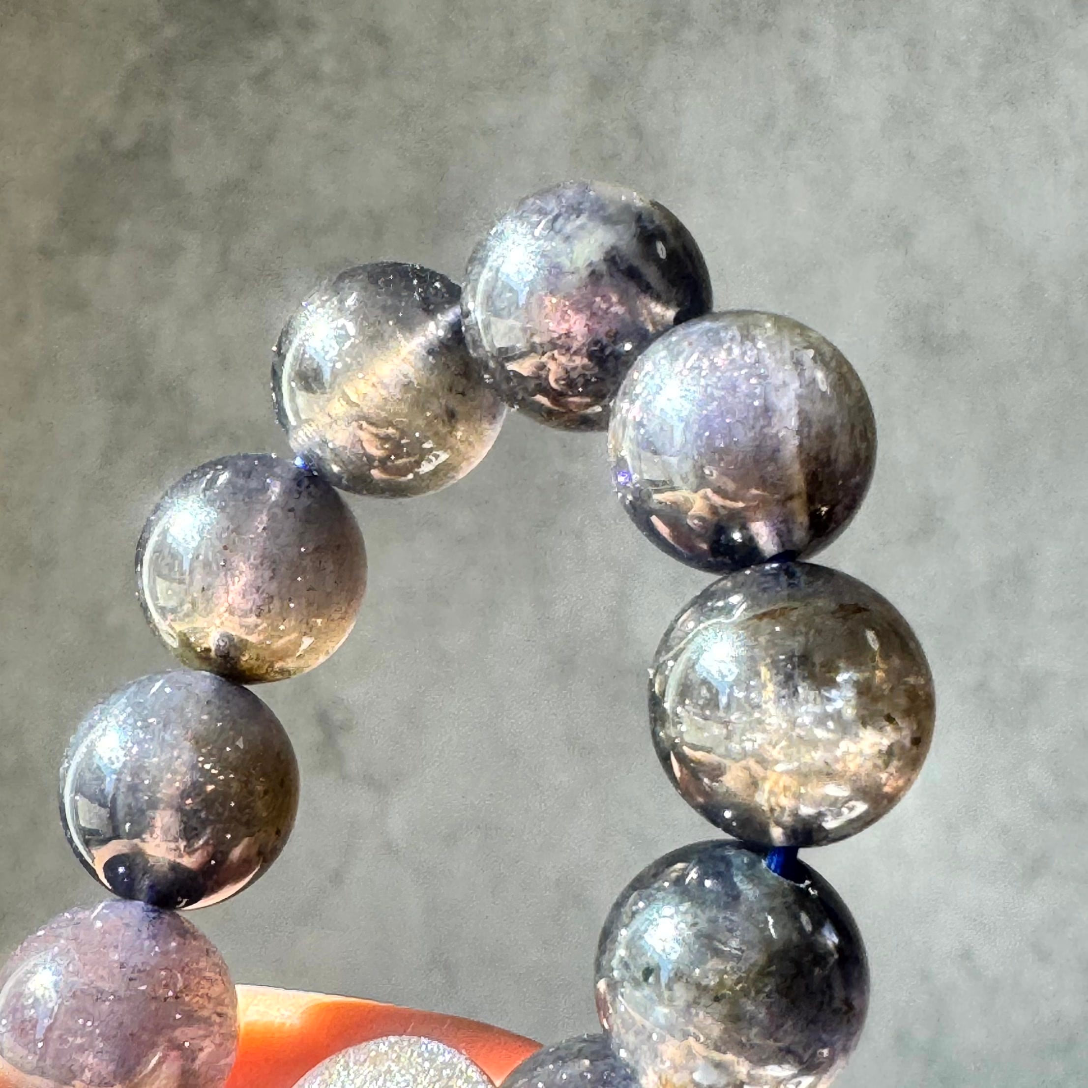 多色とアベンチュリン効果抜群のブラッドショットアイオライトブレスレット11.5ミリ