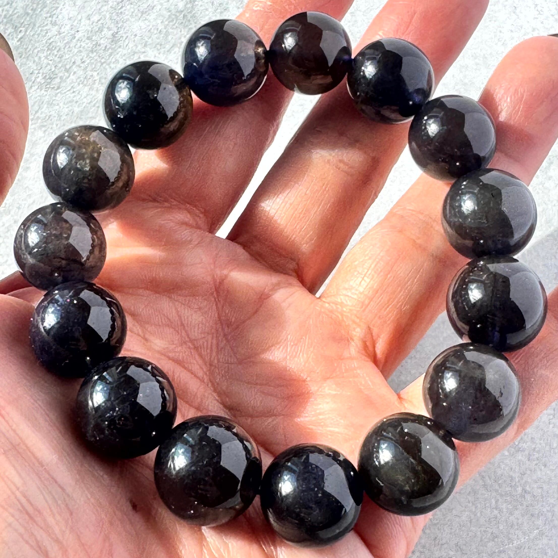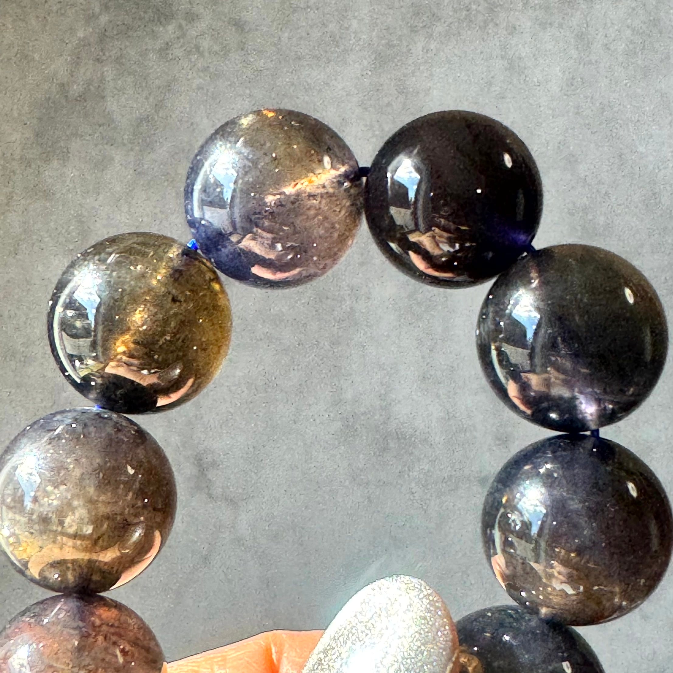 多色とアベンチュリン効果抜群のブラッドショットアイオライトブレスレット14ミリ