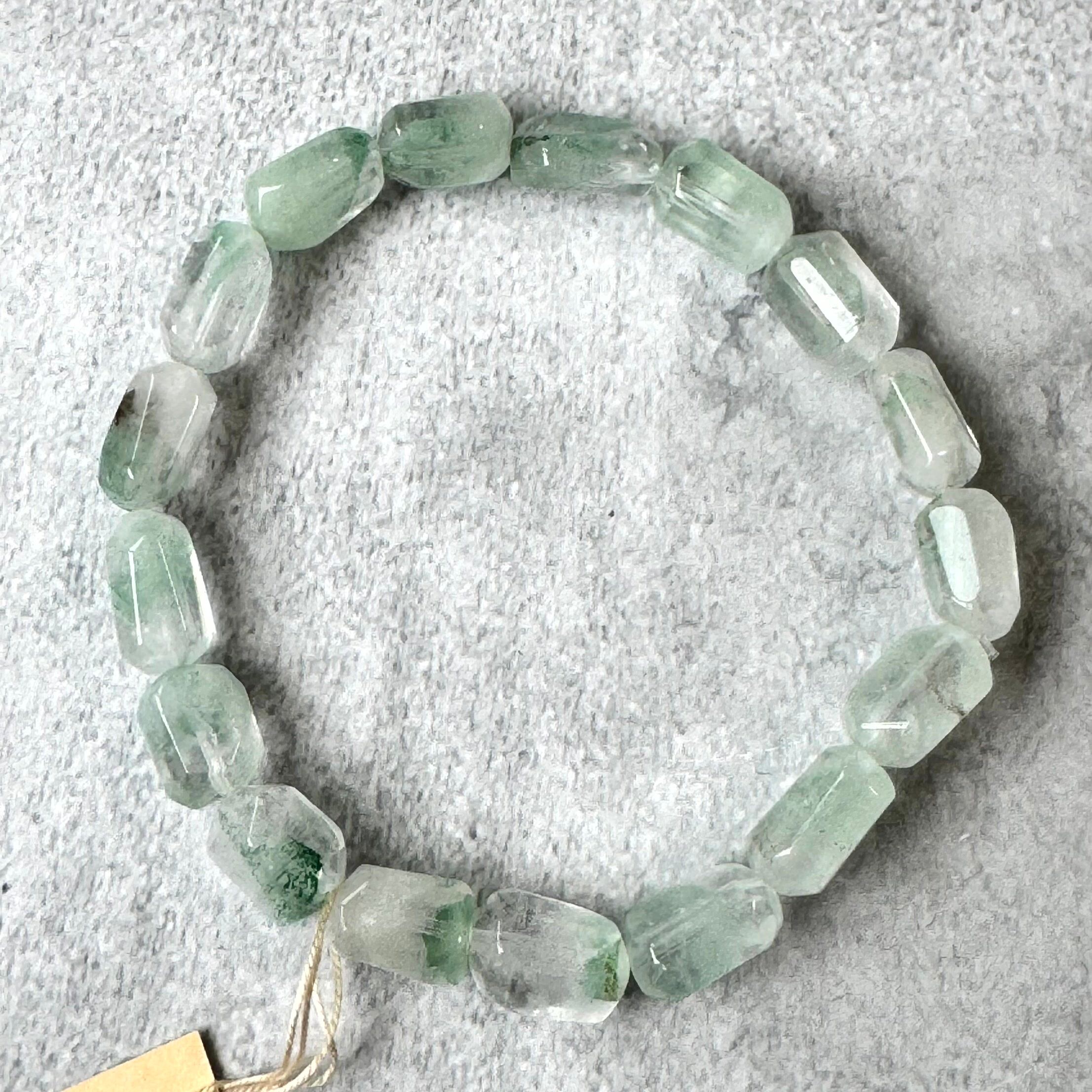 森の息吹を閉じ込めたようなグリーンファントムタンブルブレスレット。