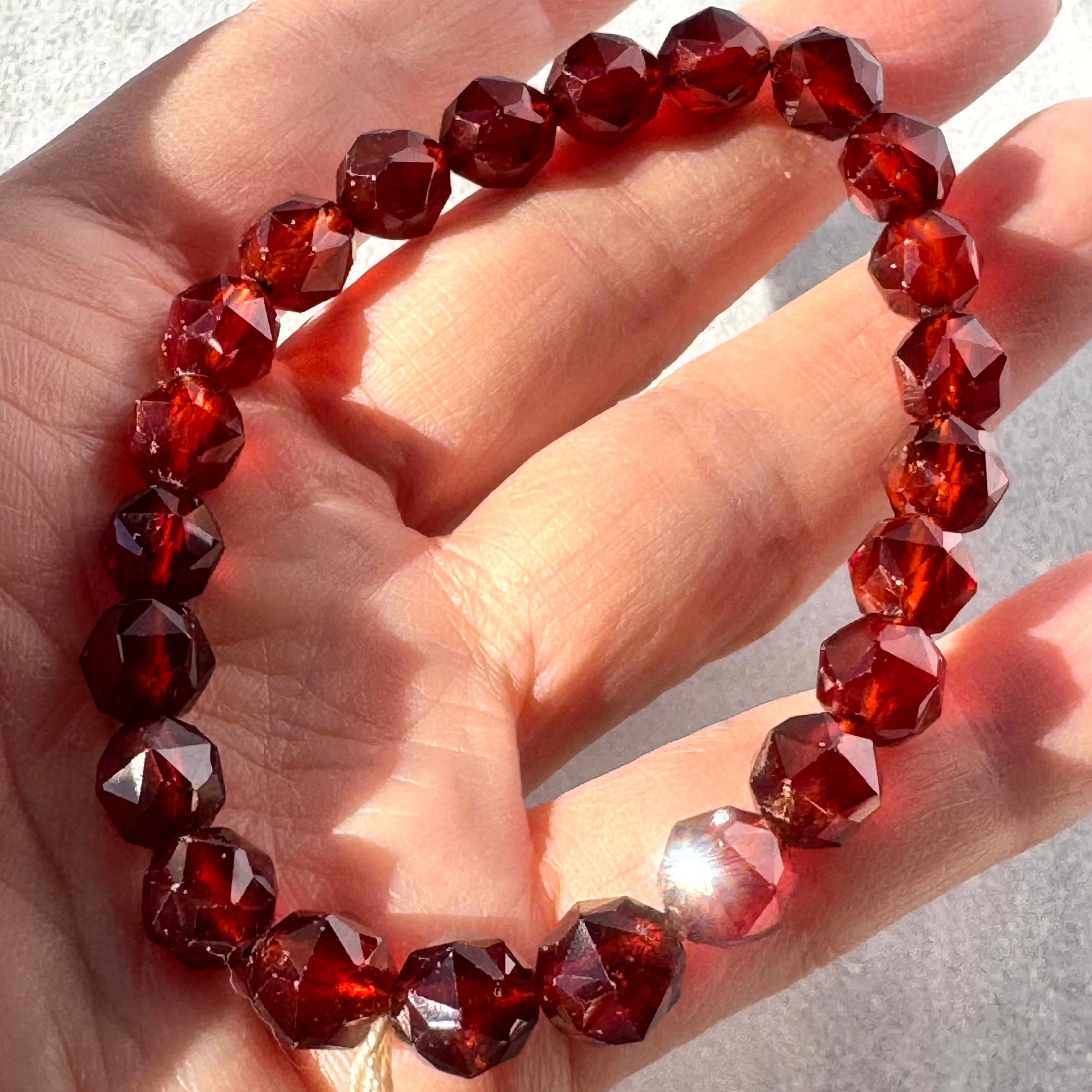 まばゆいヘソナイト(オレンジガーネット)スターカットブレスレット