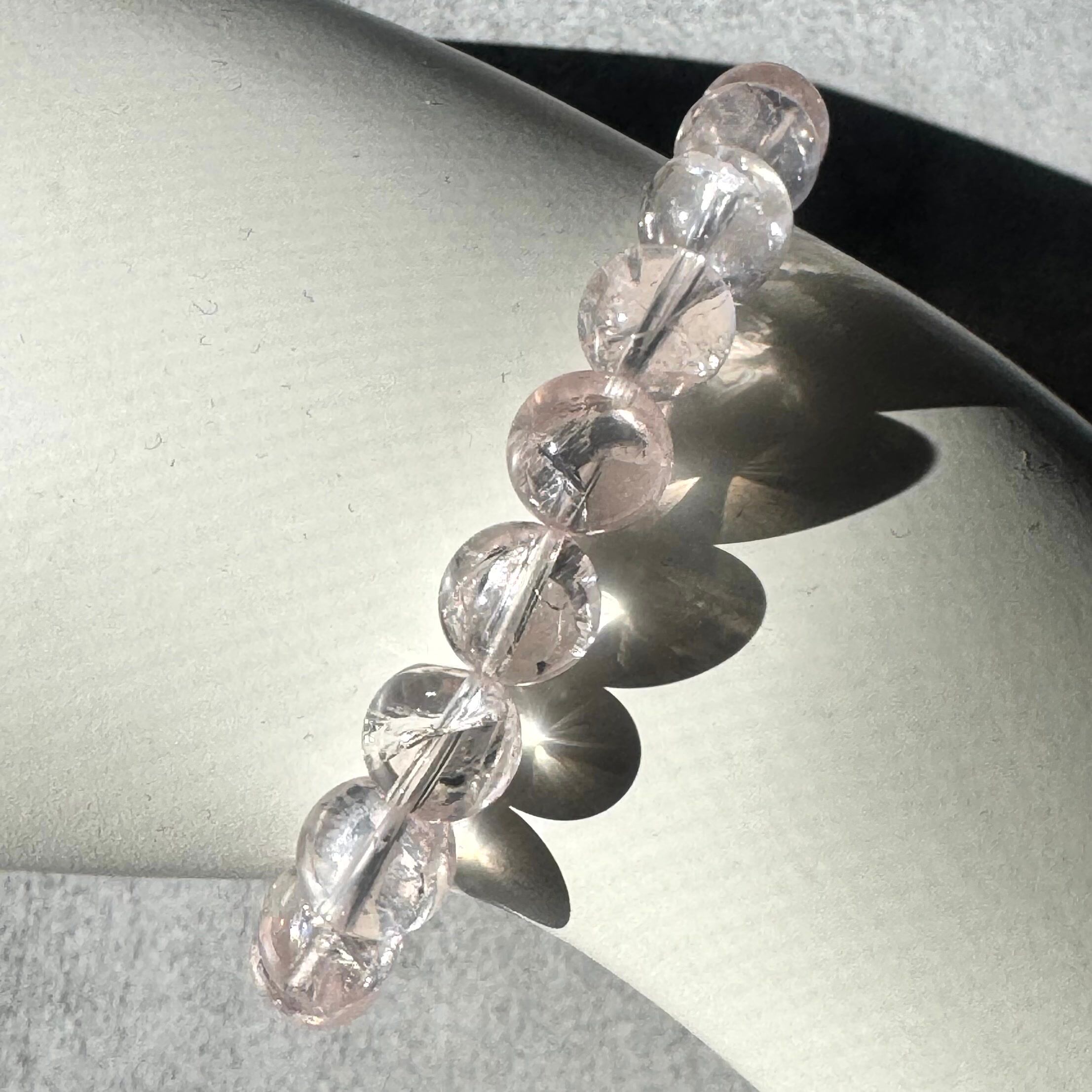 心を癒す柔らかな色合いのマダガスカル産アイリスローズクォーツブレスレット。