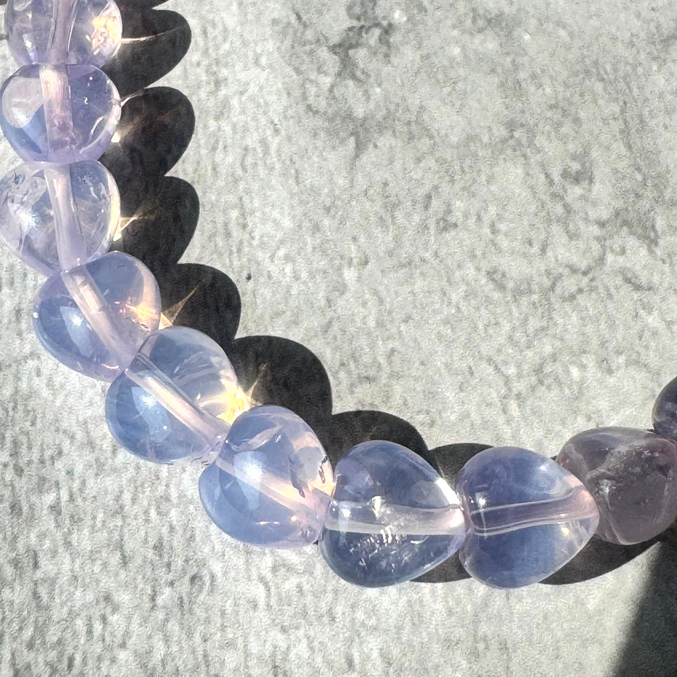 淡紫の中に静かな輝きを宿すスコロライトに、特別なハートカットが上品な表情を添えています。甘さを抑えた色合いが大人の女性にぴったりの、洗練された一本です。