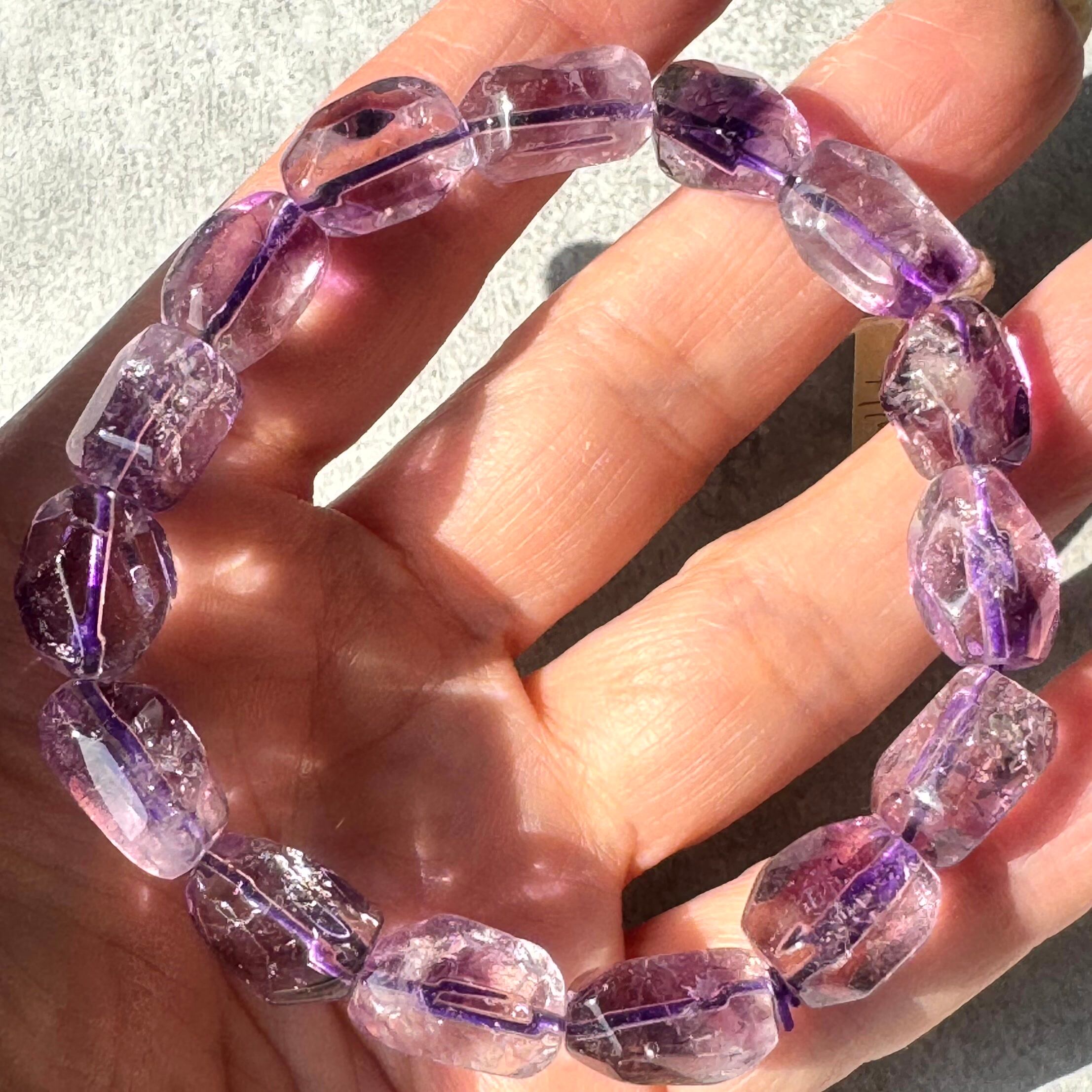 透明感の中にふわりと浮かぶ淡い紫 アメジストエレスチャルタンブルブレスレット