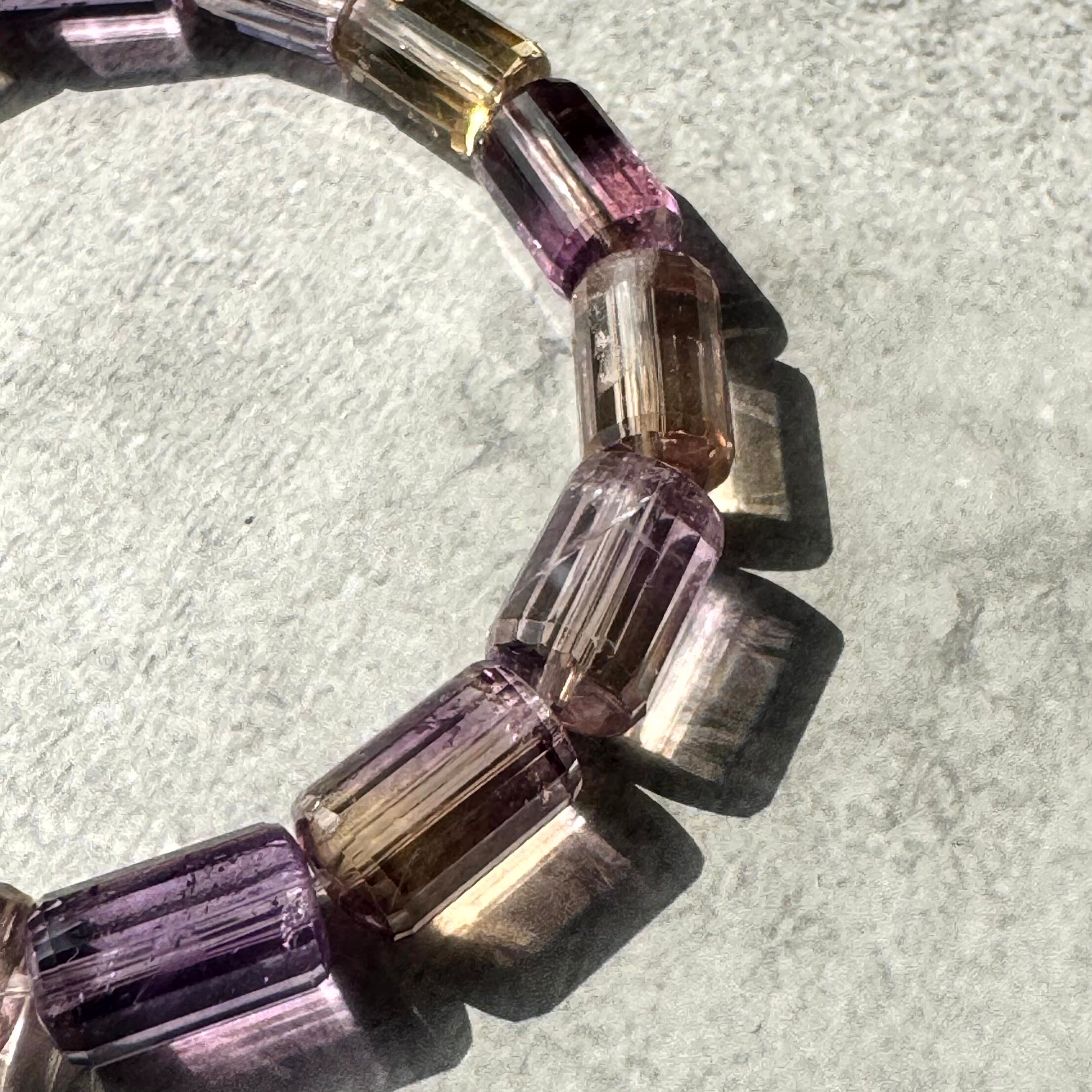 光を通すたびに色が踊るアメトリンチューブカットブレスレット