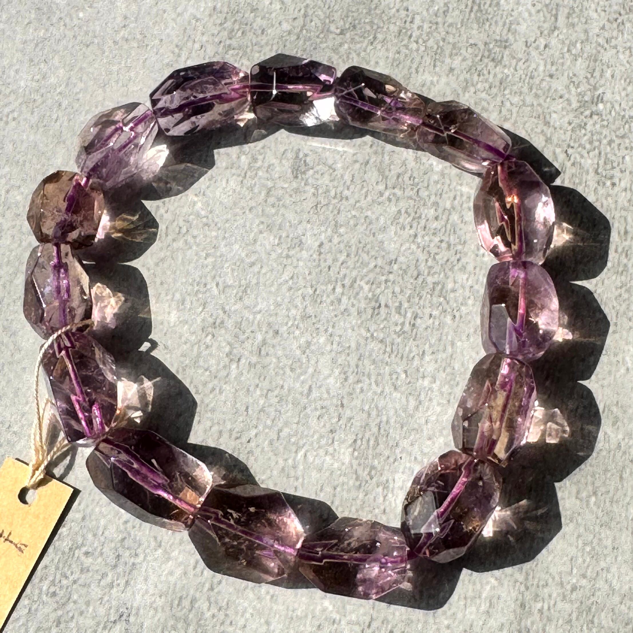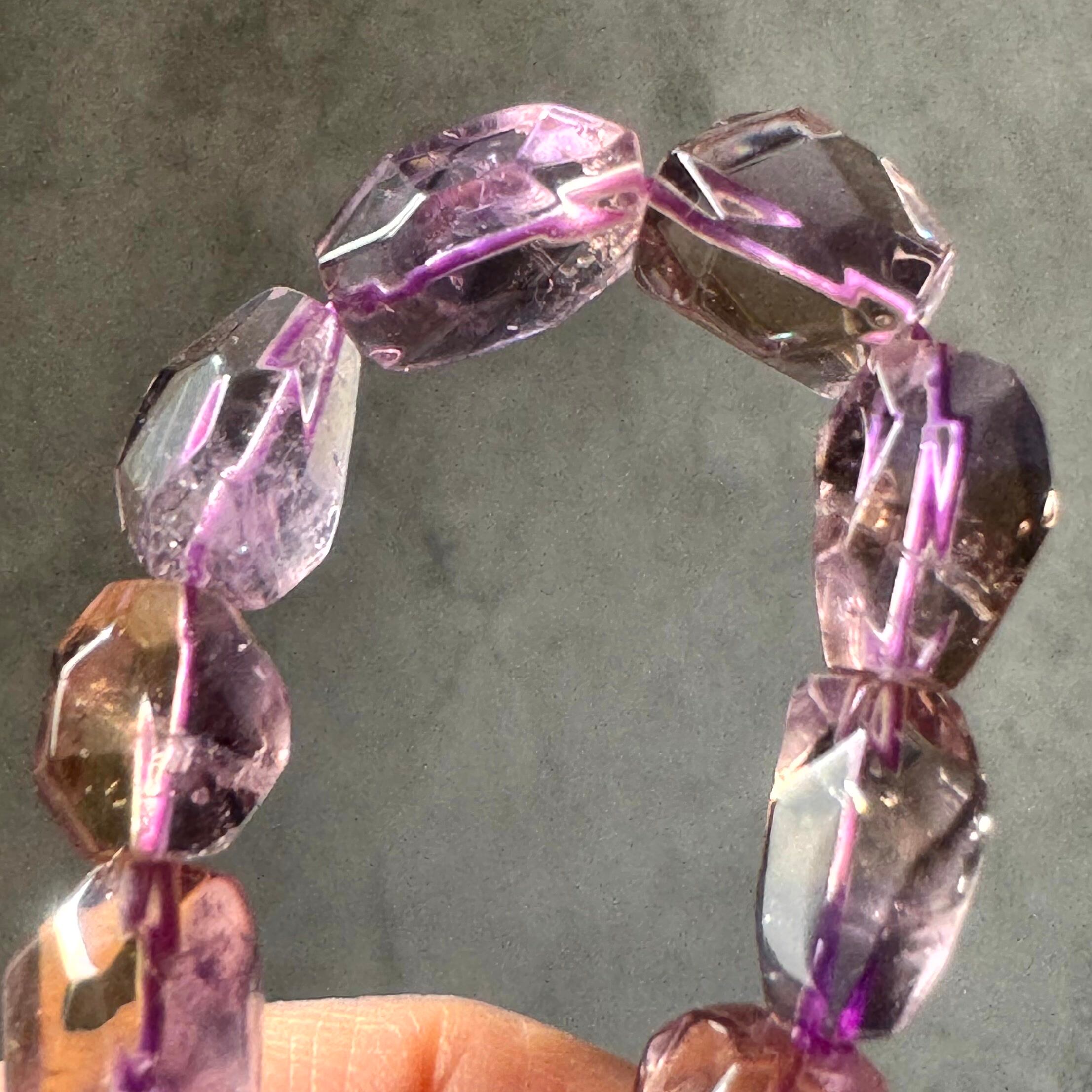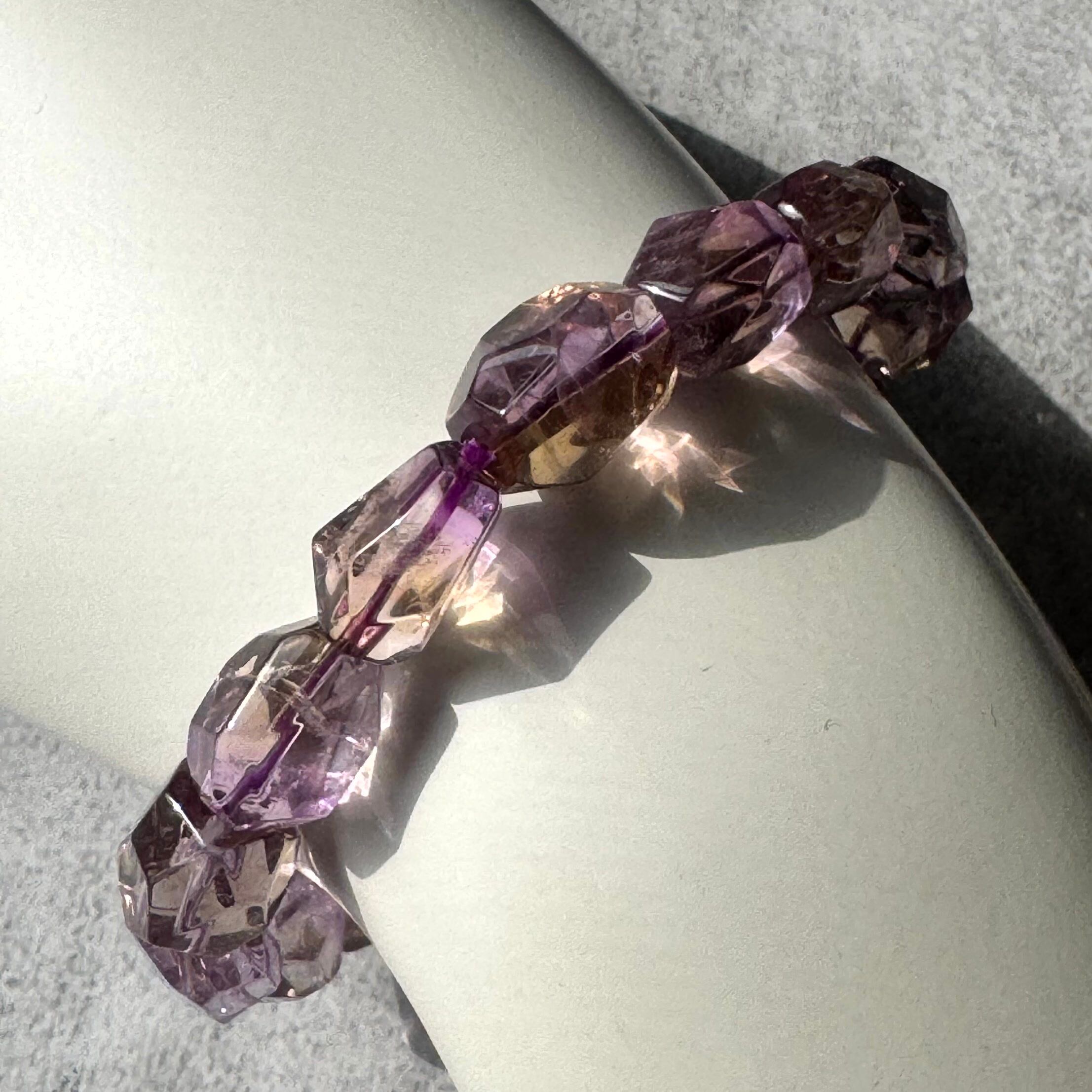 淡い紫と黄金のゆらぎをまとうアメトリンタンブルカットブレスレット