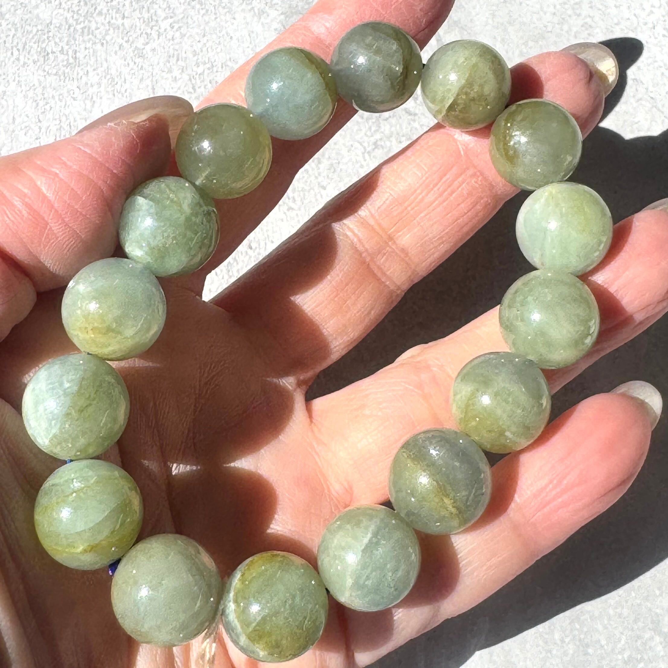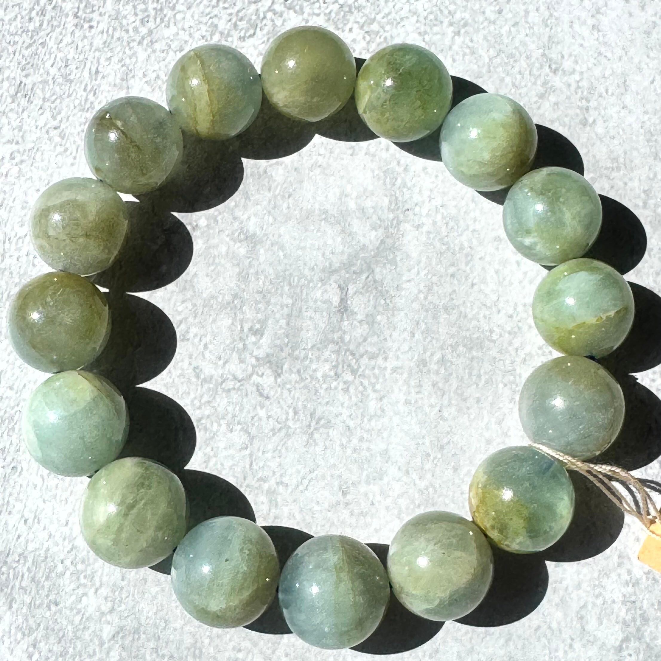 淡いブルーとグリーンのゆらぎが美しいアクアマリンブレスレット13.5ミリ