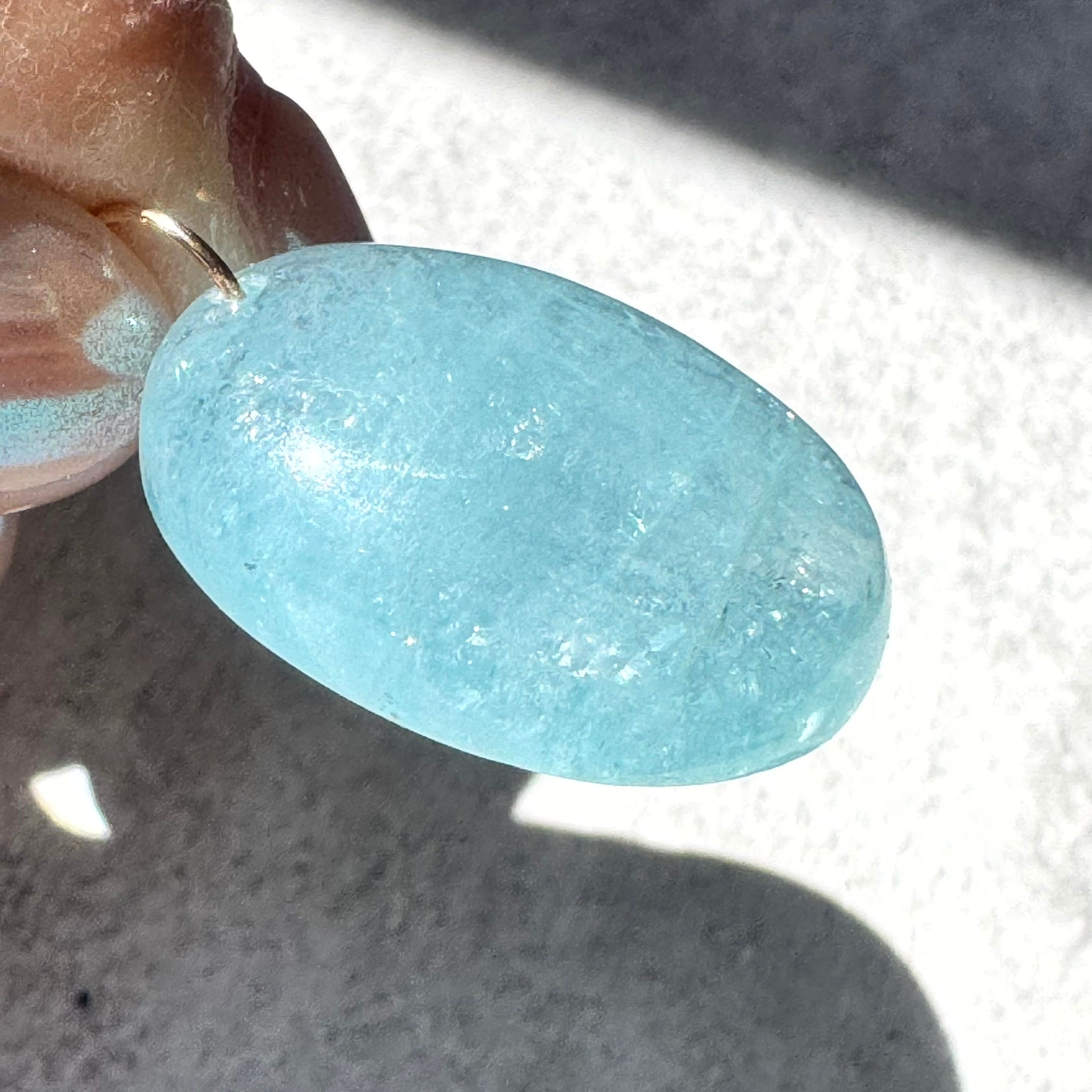 淡いブルーに光の粒が舞う、14kgfアクアマリンペンダントトップ