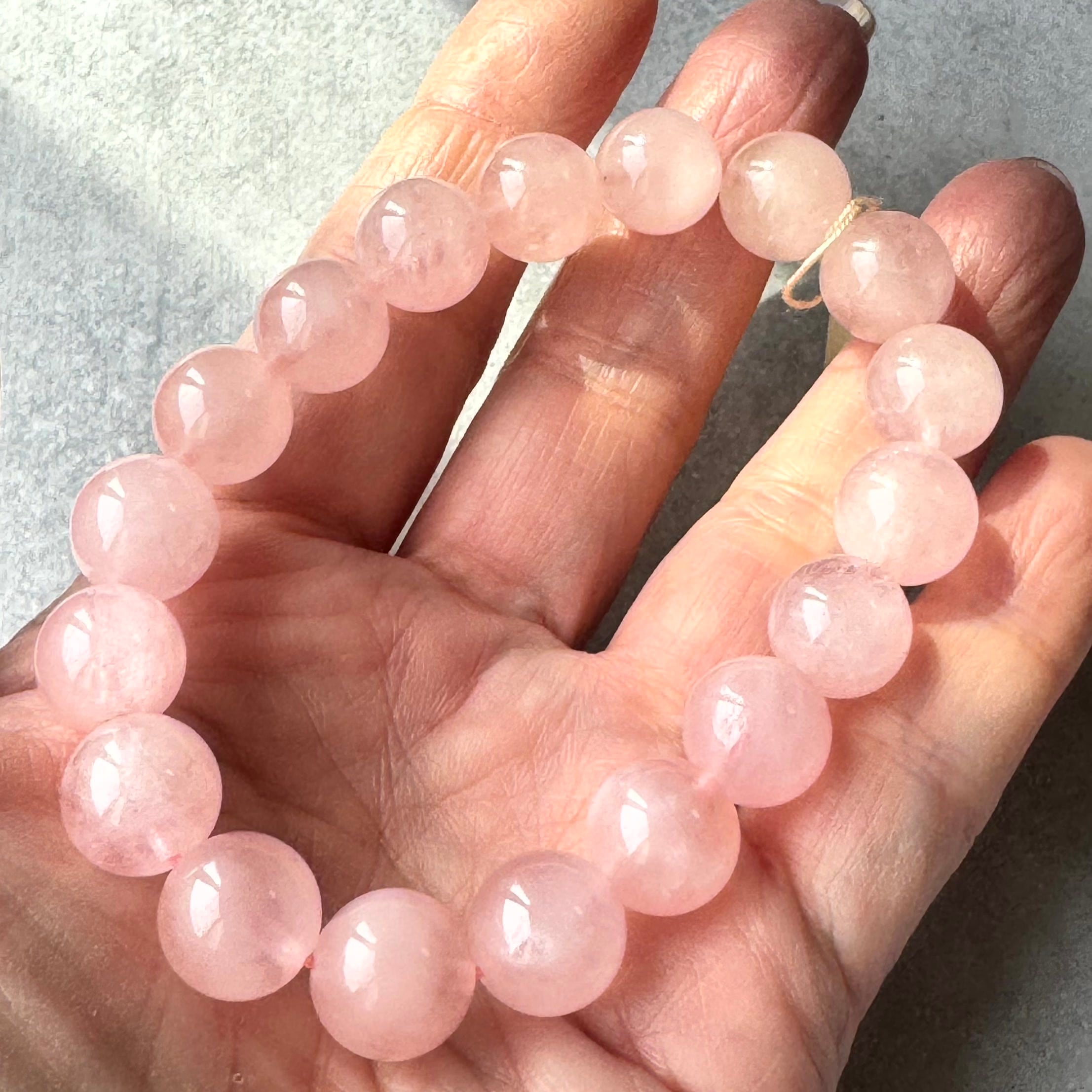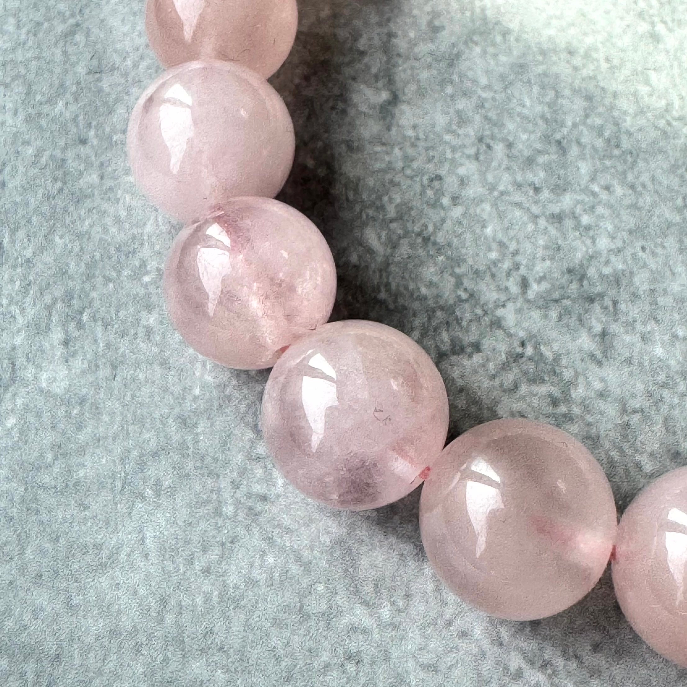 桜の花びらを思わせる、やさしい桜ピンクがふわりと広がるモルガナイトブレスレットです。淡いピンクにほんのりと温かみが重なり、光を受けるたびに柔らかな艶が手元でそっときらめきます。可憐さと上品さを兼ね備えた色味で、日常に春のときめきを添えてくれる一本です。