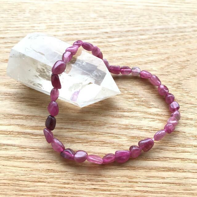 鮮やかなピンクトルマリンのタンブルブレスです。
