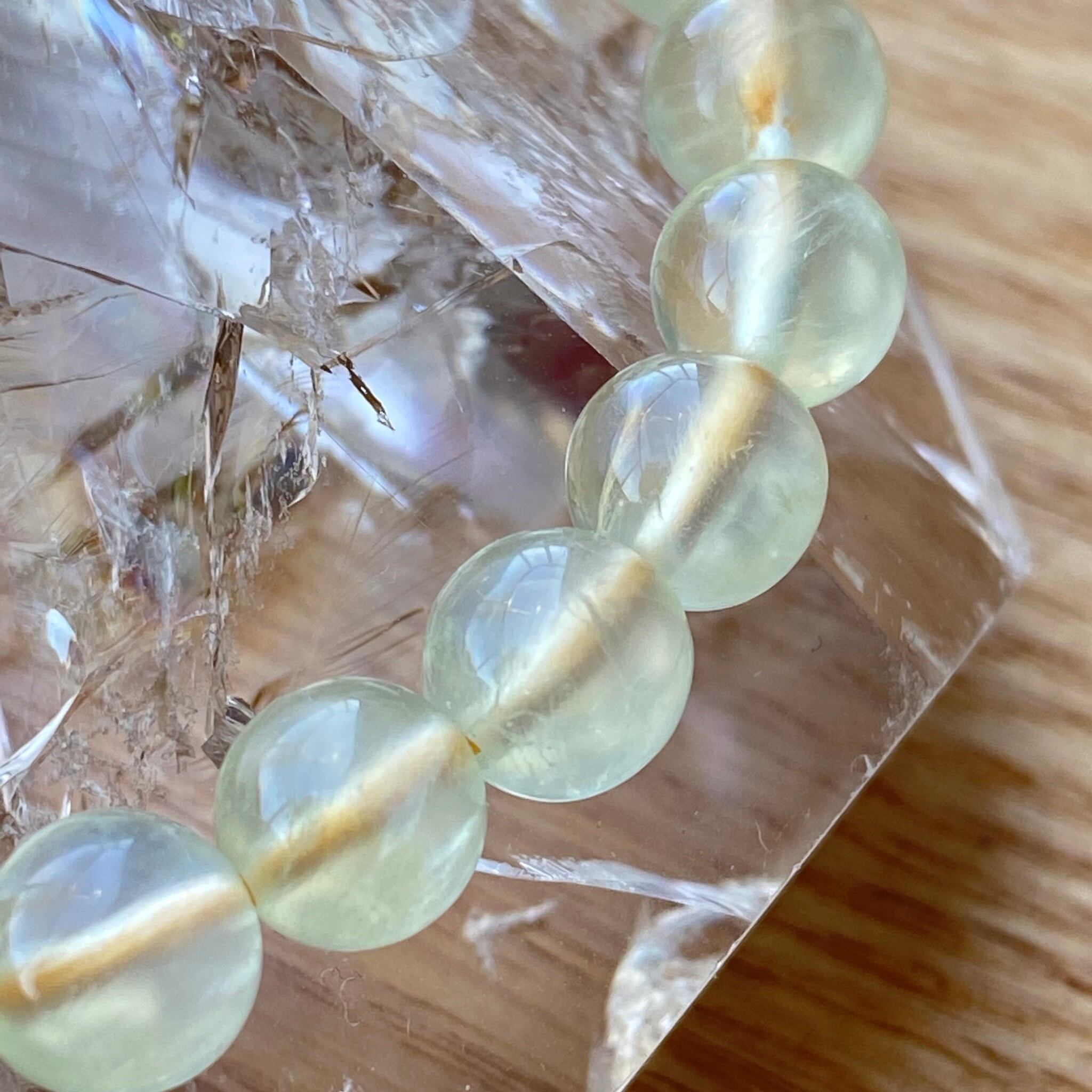 イエロープレナイト(ゴールデンプレナイト)のブレスレットです。