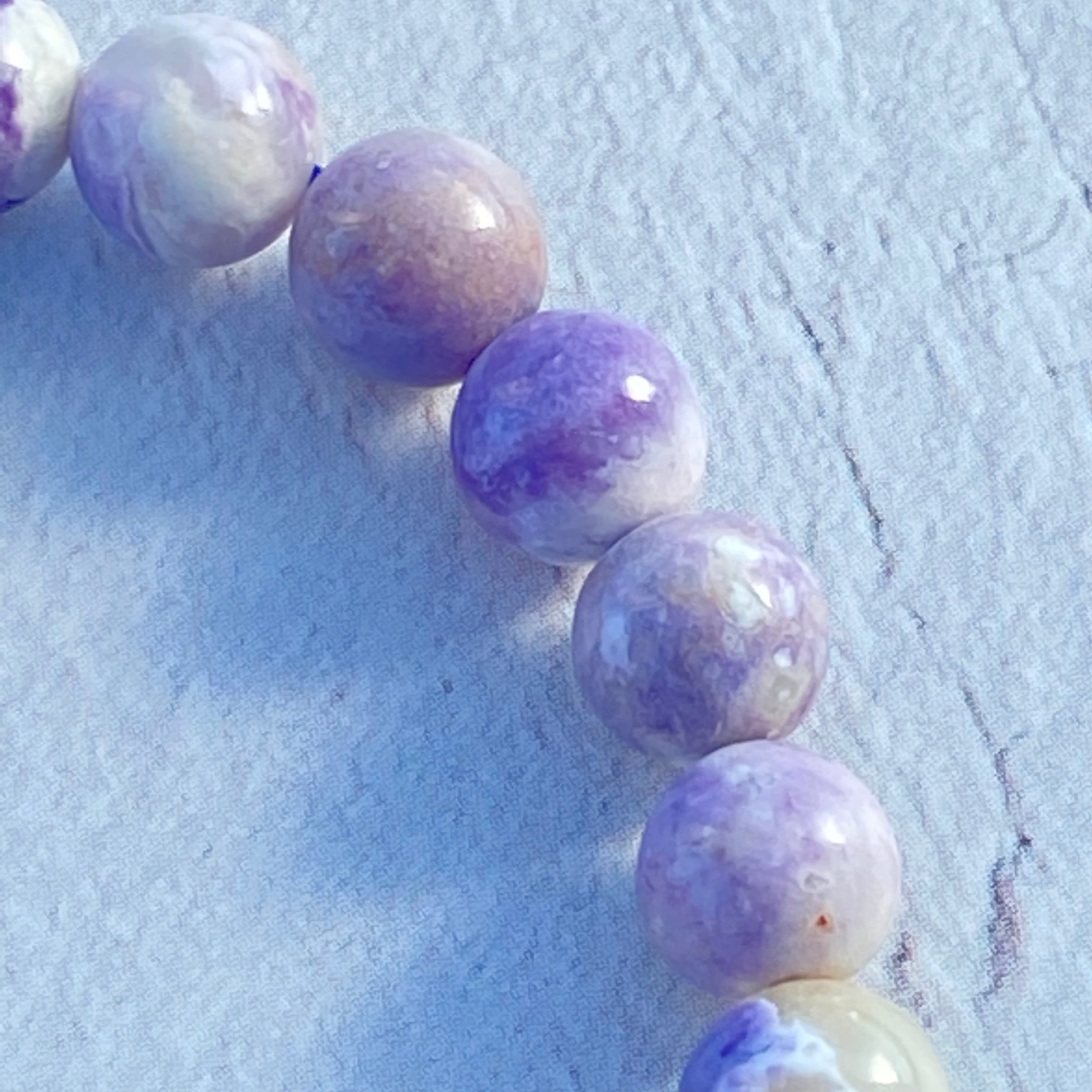 フローライトがオパール化した、優しいパープルが印象的な石です。