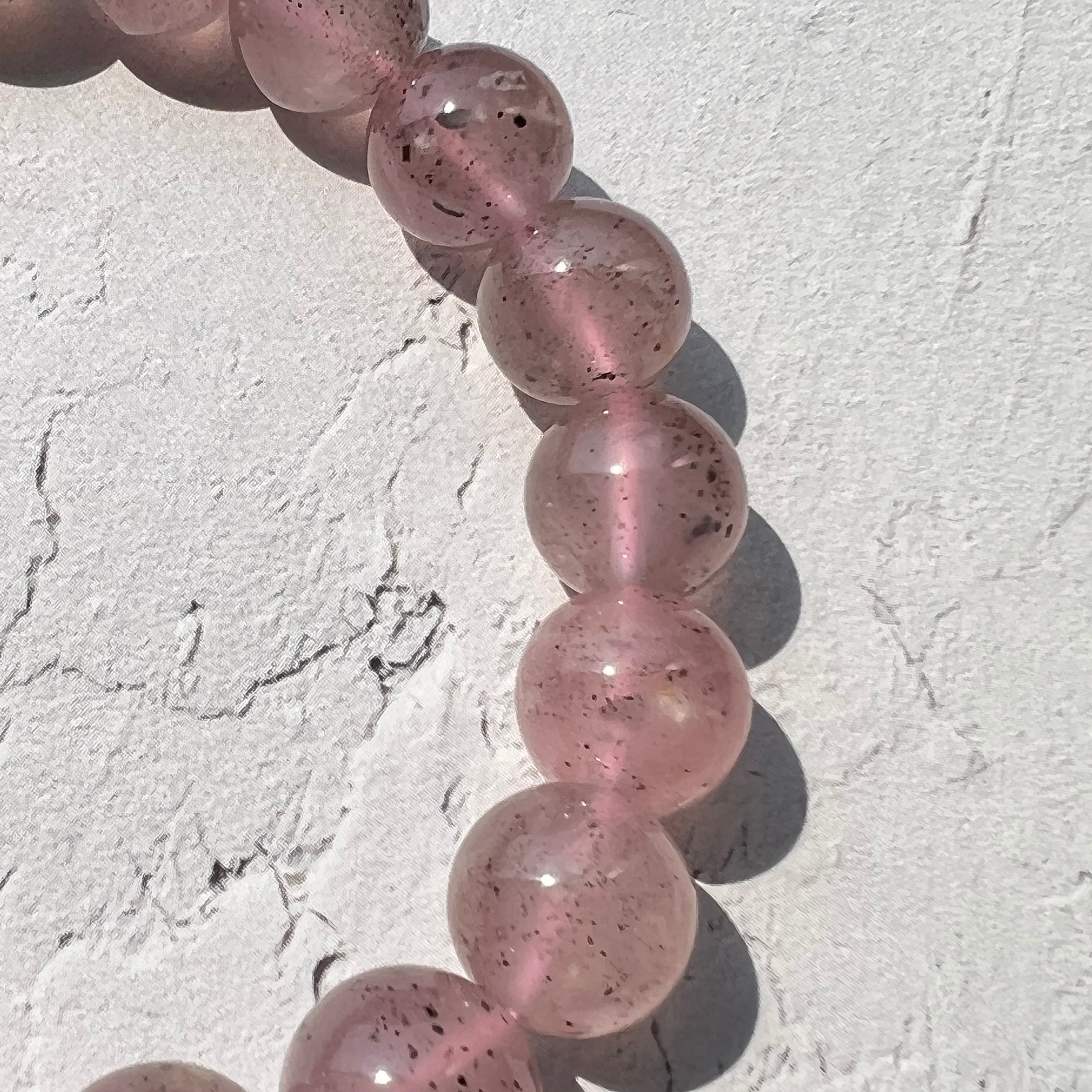 ヒマラヤのガネーシュで採れるローズクォーツは、色合いとは正反対な強さを感じます。