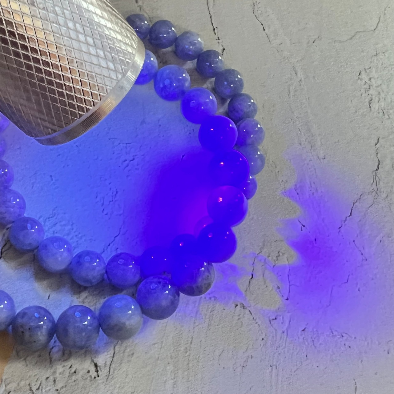 紫外線に当たると変色し、色が濃くなるという不思議な性質を持ち、コレクターストーンとして大変人気の高い石です。