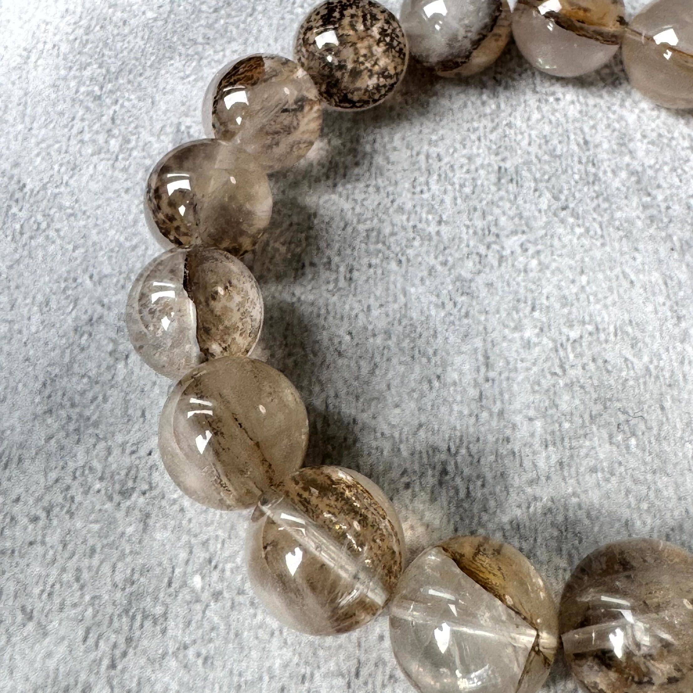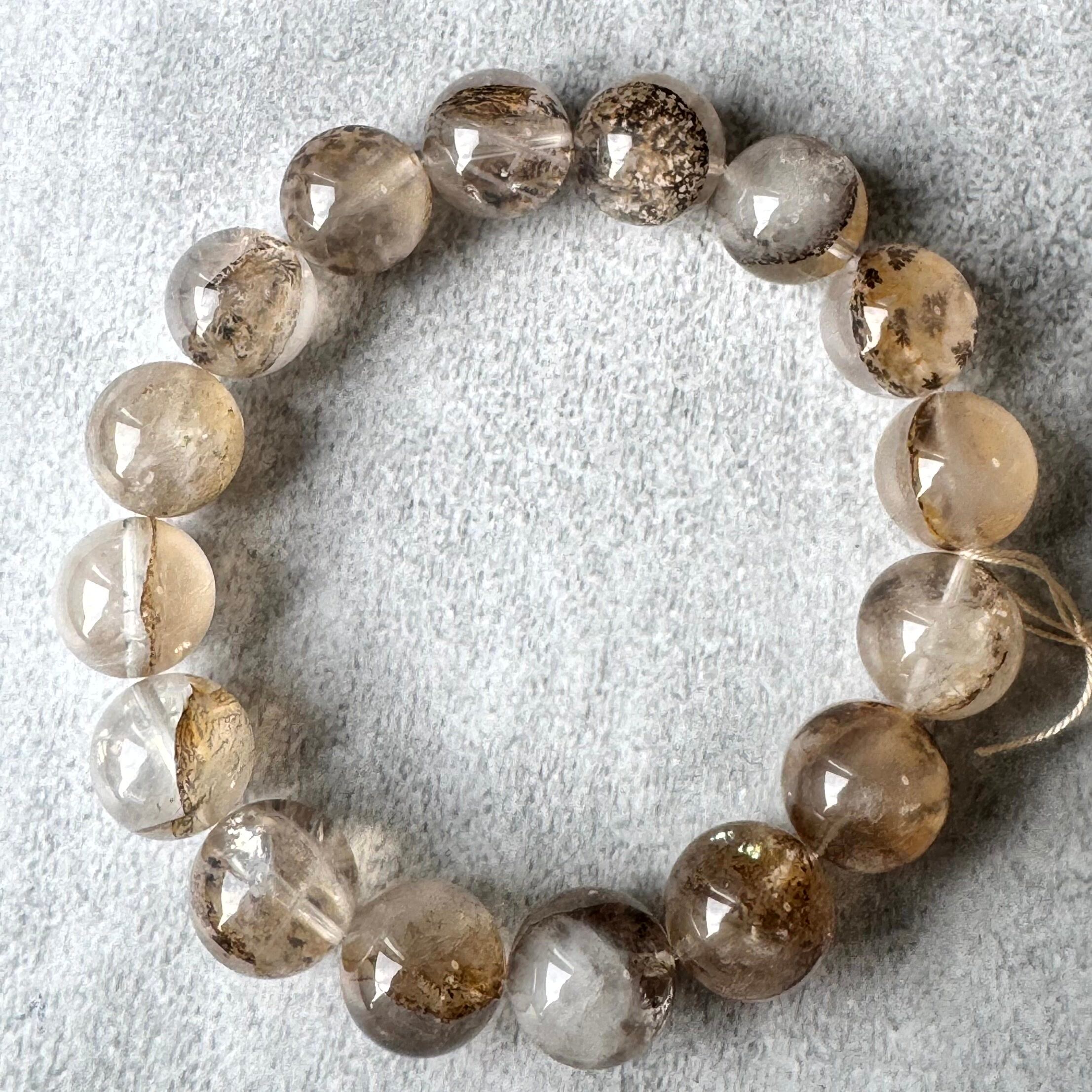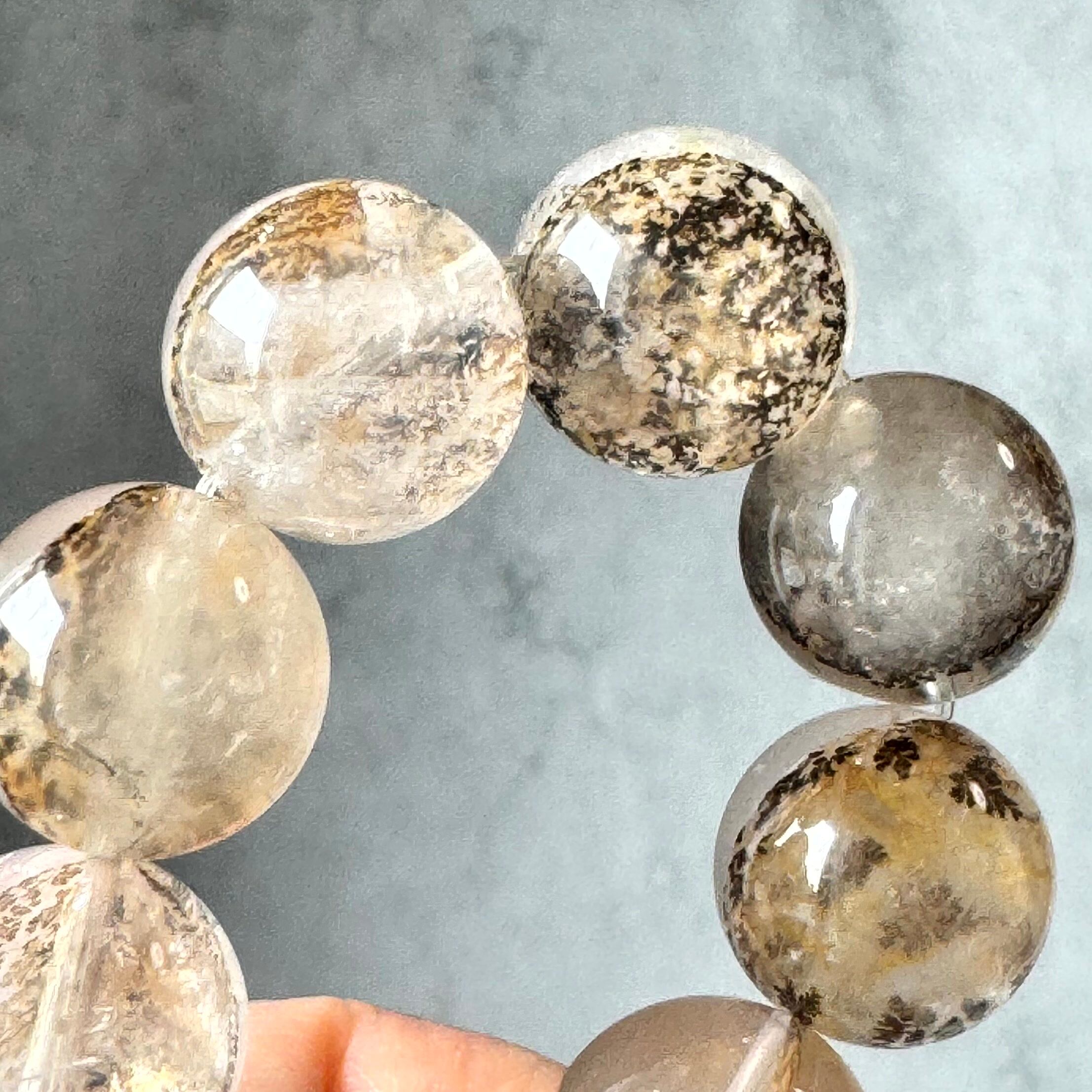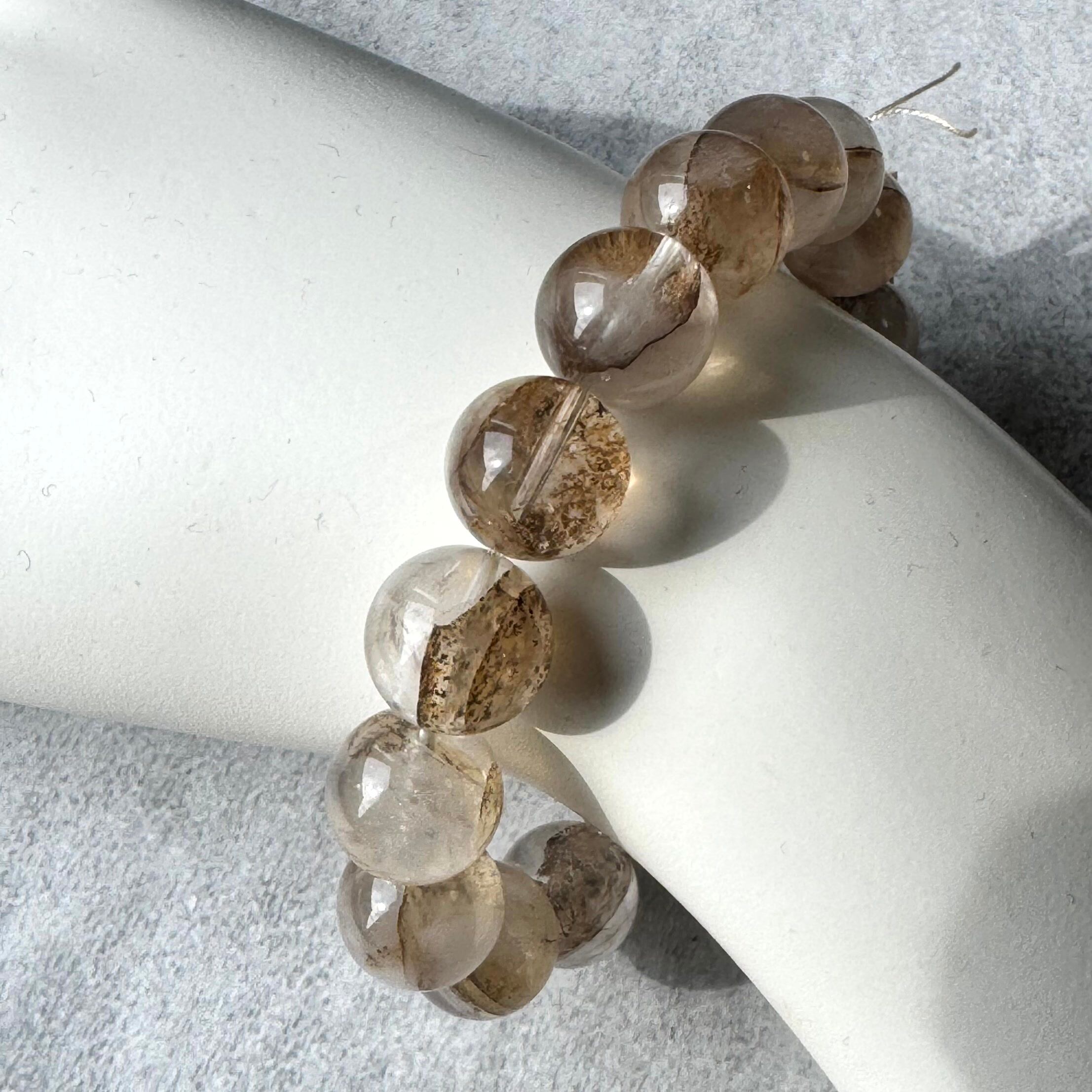 自然の模様が美しいデンドリティッククォーツを使用したブレスレット。穏やかなエネルギーを持つ天然石。 美しい模様が広がるデンドリティッククォーツのブレスレット。自然の中に凝縮された美しさと穏やかなエネルギーを感じることができます。13.5ミリのサイズ感は存在感がありつつも、派手すぎないデザインです。日常使いにもおすすめです。 このブレスレットは、自然の中でも稀少なデンドリティッククォーツを使用しています。それぞれの石には独特の模様があり、まるで自然の芸術品のようです。特別な一点ものであるため、装着する度に異なる表情を楽しむことができます。