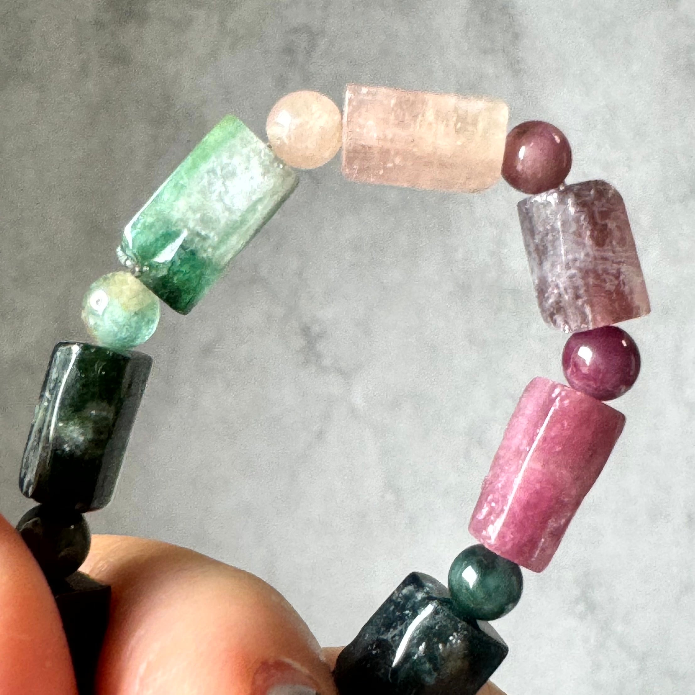 キャンディのようなミックストルマリンチューブカットブレスレットB